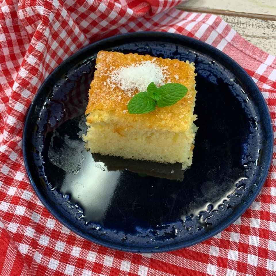 Pişen yoğurt tatlısını fırından çıkarıp ılık şerbet gezdirin ve yoğurt tatlınız hazır.