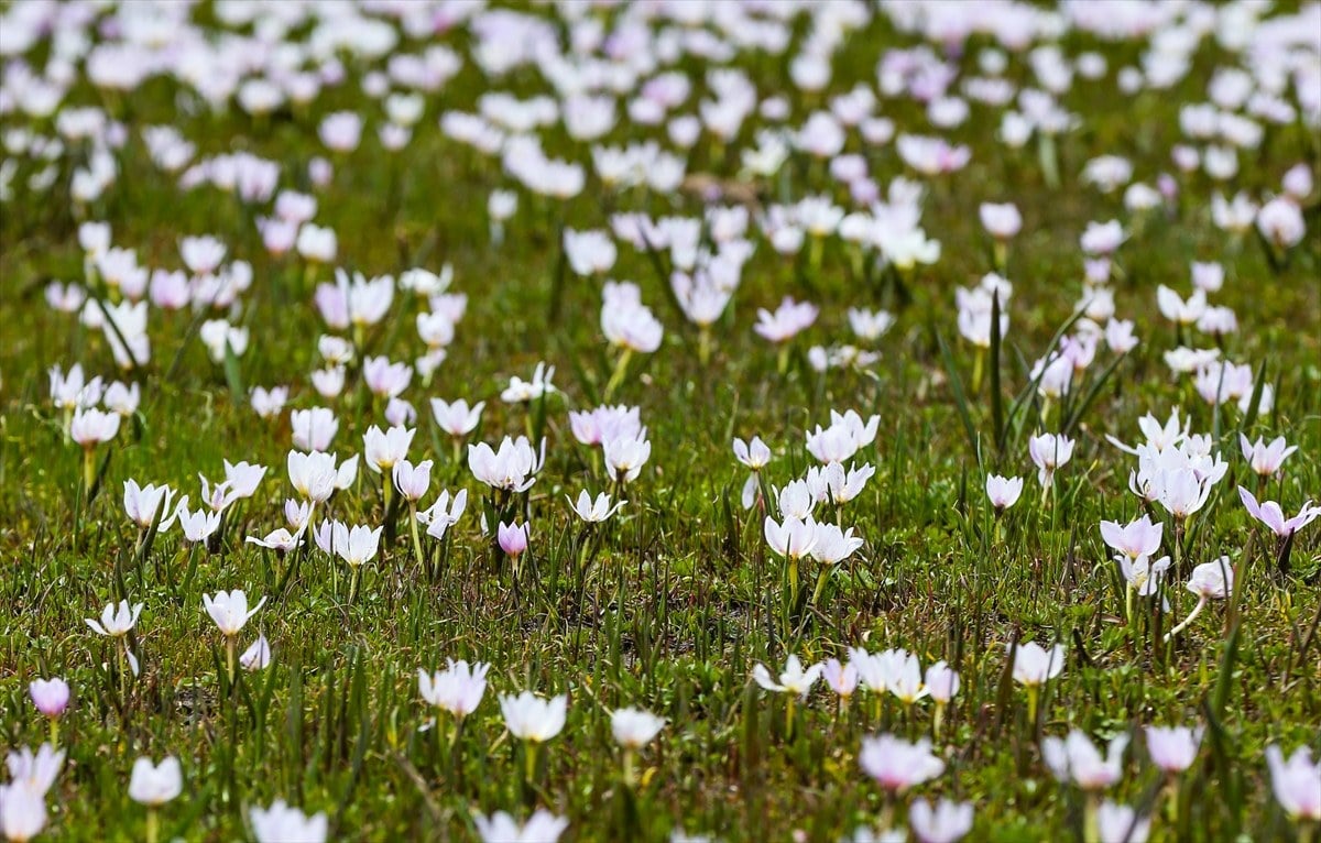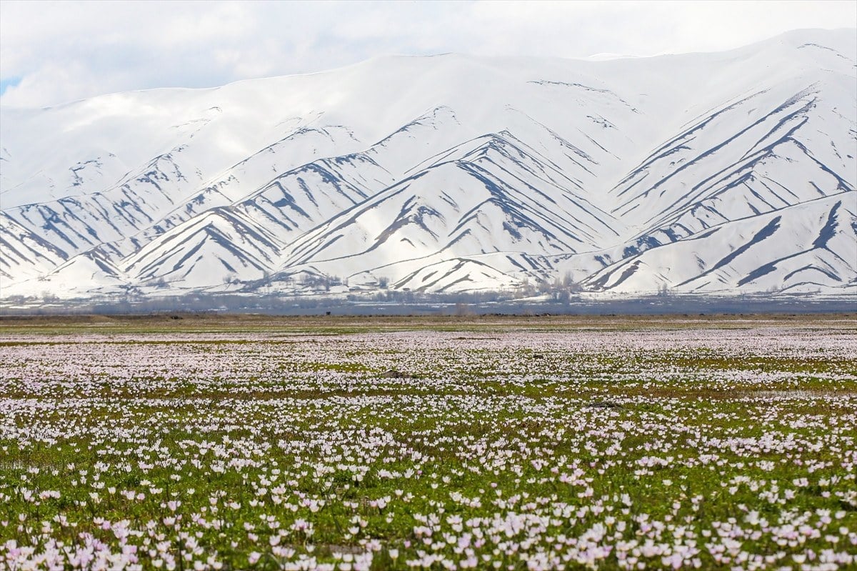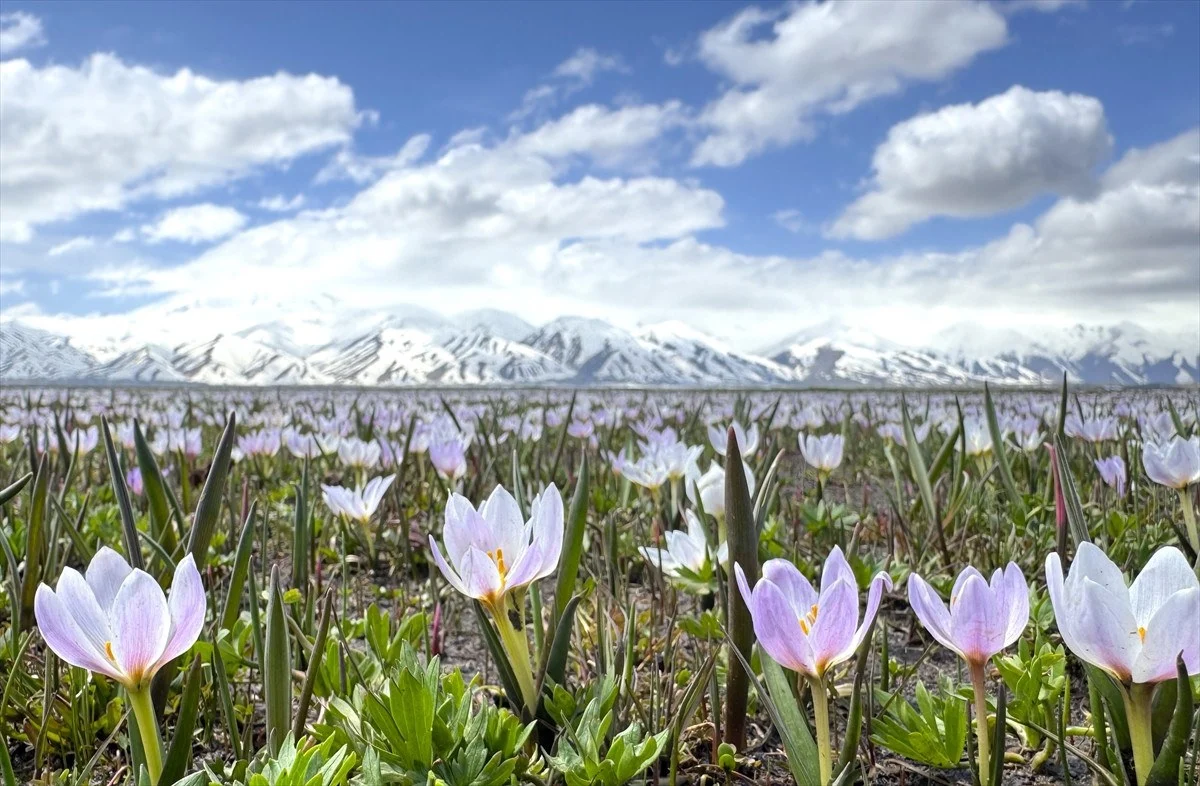 Tabiatın canlandığı, küçükbaş hayvanların meralara çıkarıldığı ilçede, baharın müjdecisi olarak bilinen çiğdemler çiçek açtı.