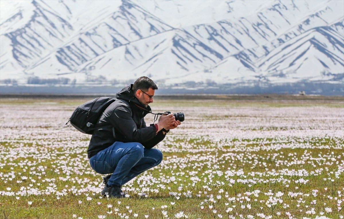 Doğaseverler ve fotoğraf tutkunları, çiçeklerle renklenen alanları gezdi, ortaya çıkan manzarayı görüntüledi.