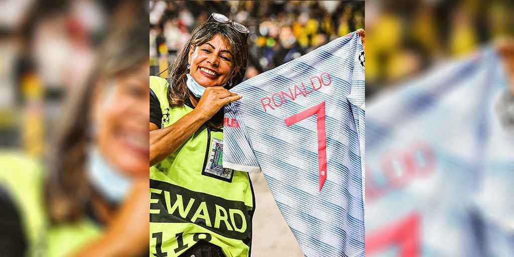 Güvenlik görevlisi kadın maç sonrasında forma ile fotoğrafını paylaştı.