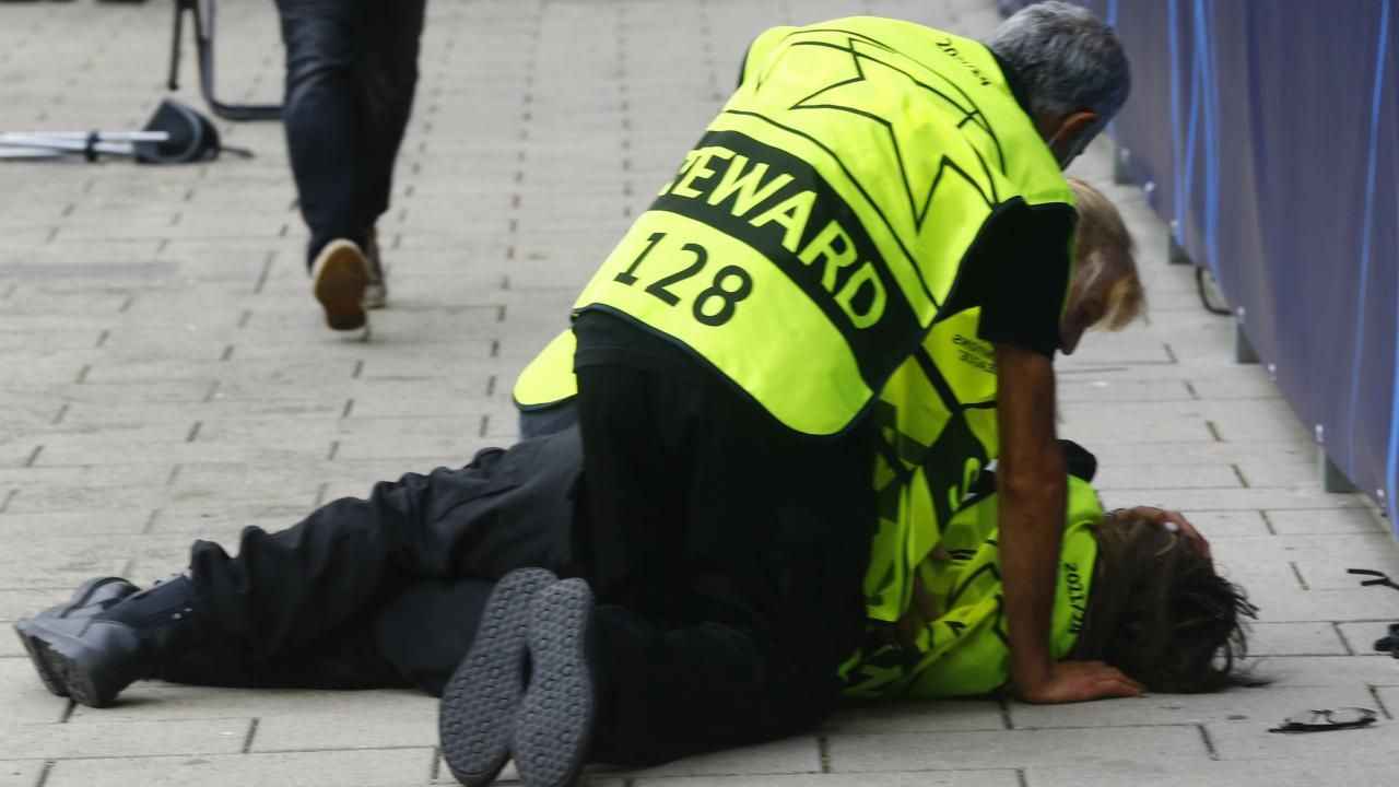 Cristiano Ronaldo'nun maç öncesi ısınırken çektiği bir şut, kadın güvenlik görevlisinin bayılmasına neden oldu.