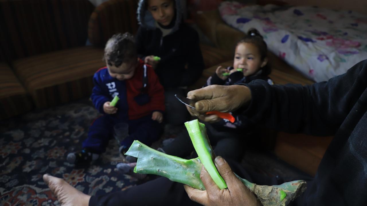İsrail'in Gazze'ye uyguladığı aç bırakma politikası sebebiyle Filistinliler şiddetli açlık ve susuzlukla mücadele ediyor. Gazzeli aile kaktüs dalları ile hayata tutunuyor...