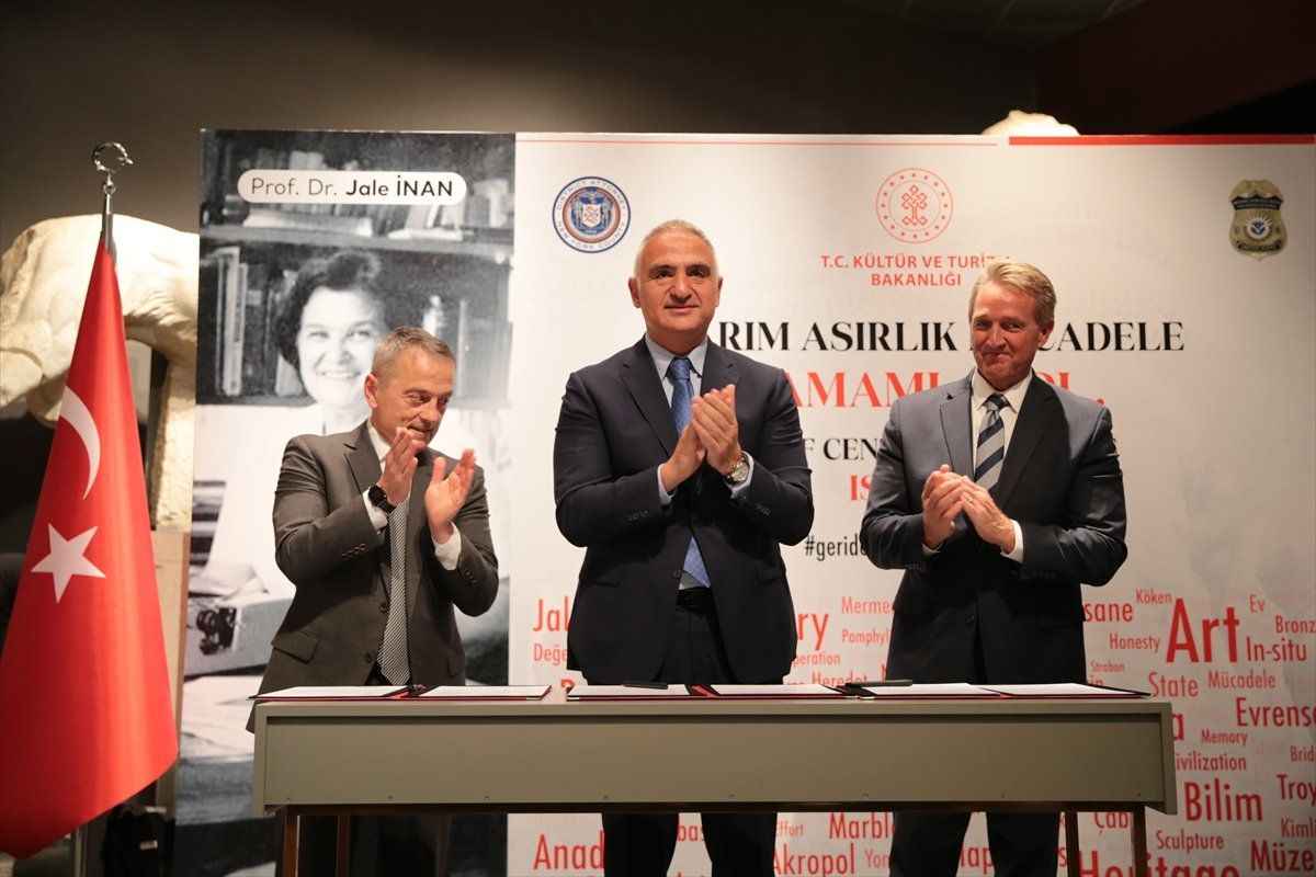 Bakan Ersoy, yaptığı konuşmada, yıllar önce bulunduğu topraklardan ayrılan eserlerin, önemli emekler ve hukukun üstünlüğü ilkesi çerçevesinde yeniden ait olduğu yere iade edilmesi dolayısıyla bir araya geldiklerini söyledi.