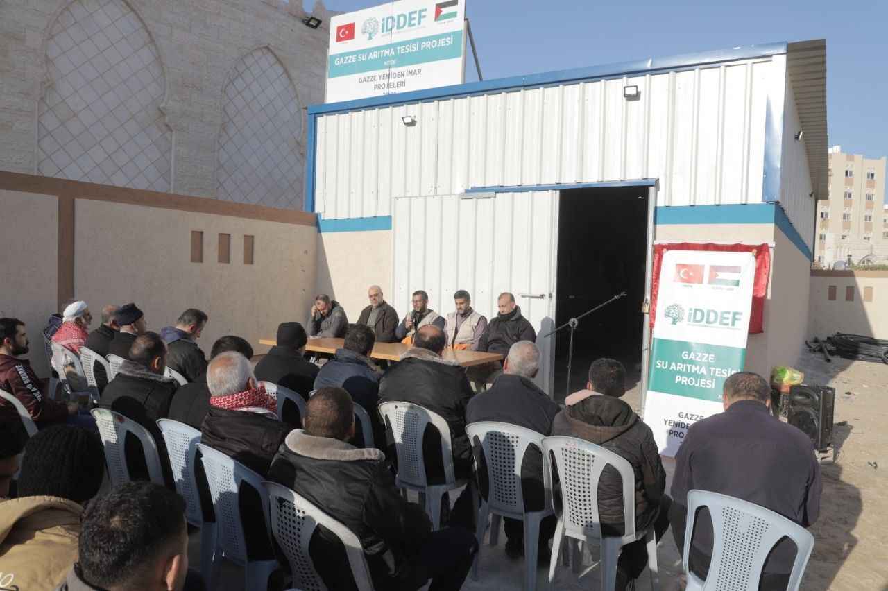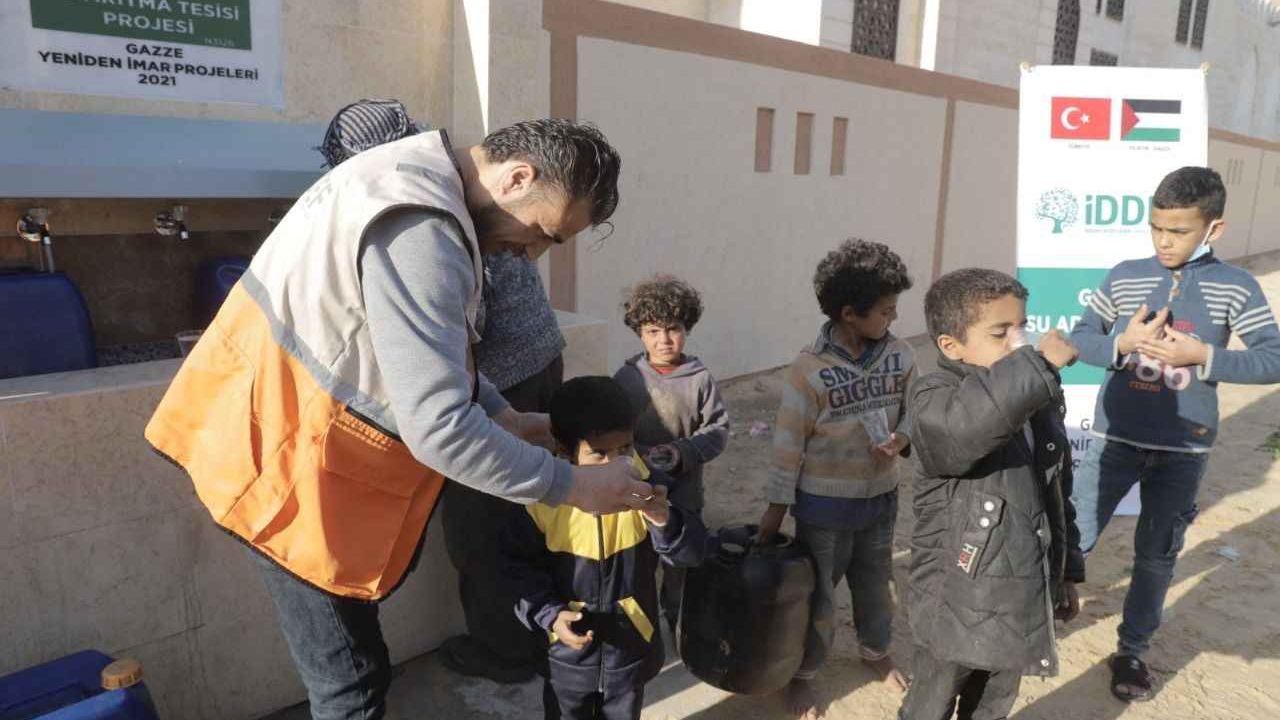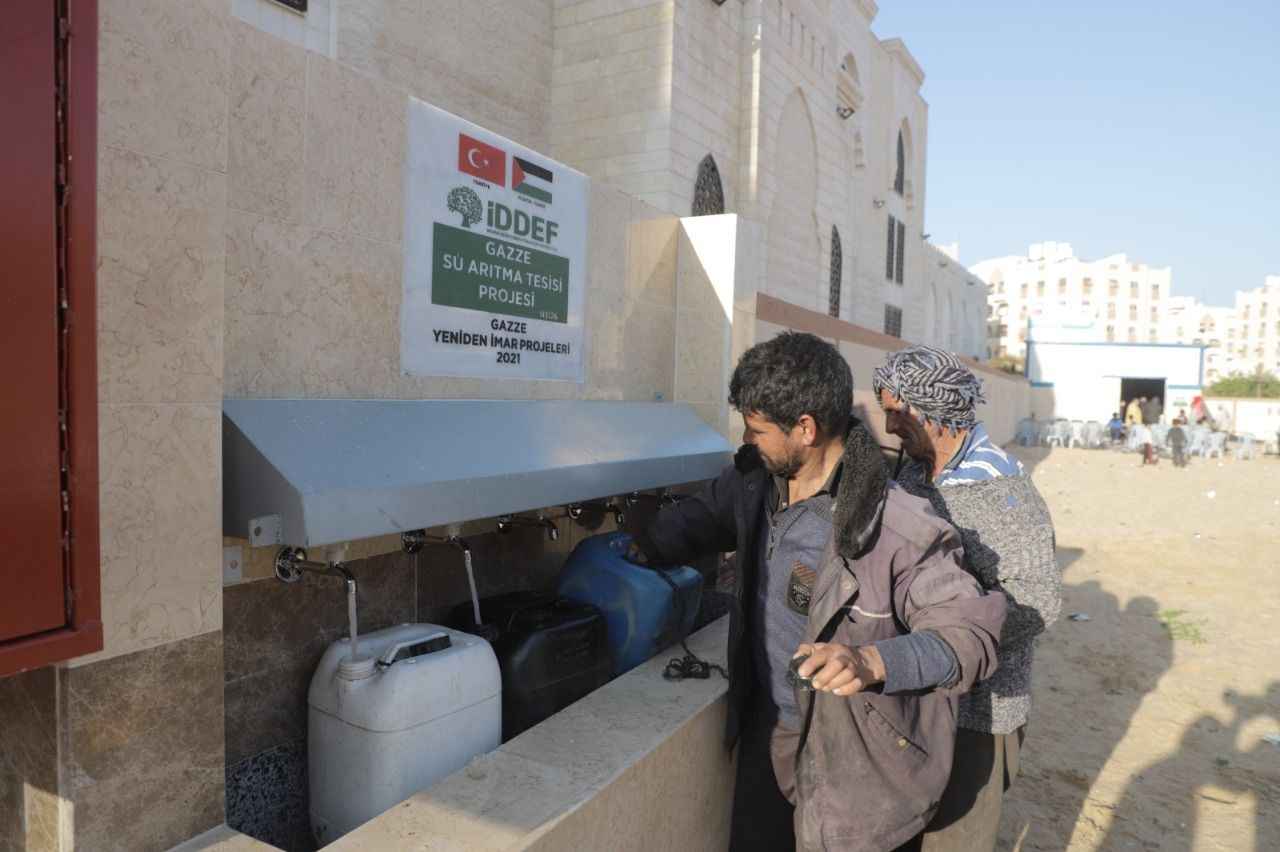 İDDEF’ten su arıtma projesiyle ilgili yapılan açıklamada, “İDDEF olarak, kalıcı eser ve sürdürülebilir su çözümleri için kapsamını genişleterek Gazze’deki Filistinli kardeşlerimizin hizmetine sunduğumuz su depolu ve çeşmeli su arıtma tesisinin ikincisini kurduk. Hayırseverlerimizin desteğiyle 100 metrekare alanda inşa ettiğimiz ve günde 250.000 litre temiz su veren projemizle yılda 120.000 kardeşimizin temiz ve tatlı suya kavuşmasını sağladık. Tuz ve yüksek oranda klorür, nitrat içeren kirli suları sağlıklı ve içilebilir hale getirip Filistin halkının kullanımına sunarak zor durumdaki kardeşlerimizin hayatını kolaylaştırdık. Hayati bir ihtiyaca cevap verecek olan su projemizle İsrail saldırılarında büyük yara alan zulüm ve baskı nedeniyle zor günler yaşayan Filistinli kardeşlerimize umut olmaya çalıştık. Temiz içme suyundan mahrum olan kardeşlerimiz bağışçılarımızın desteğiyle inşa ettiğimiz su arıtma tesisinden süzülecek ve çeşmelerden akacak suyla mutluluğa ve sağlığa kavuşacak” denildi.