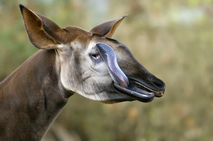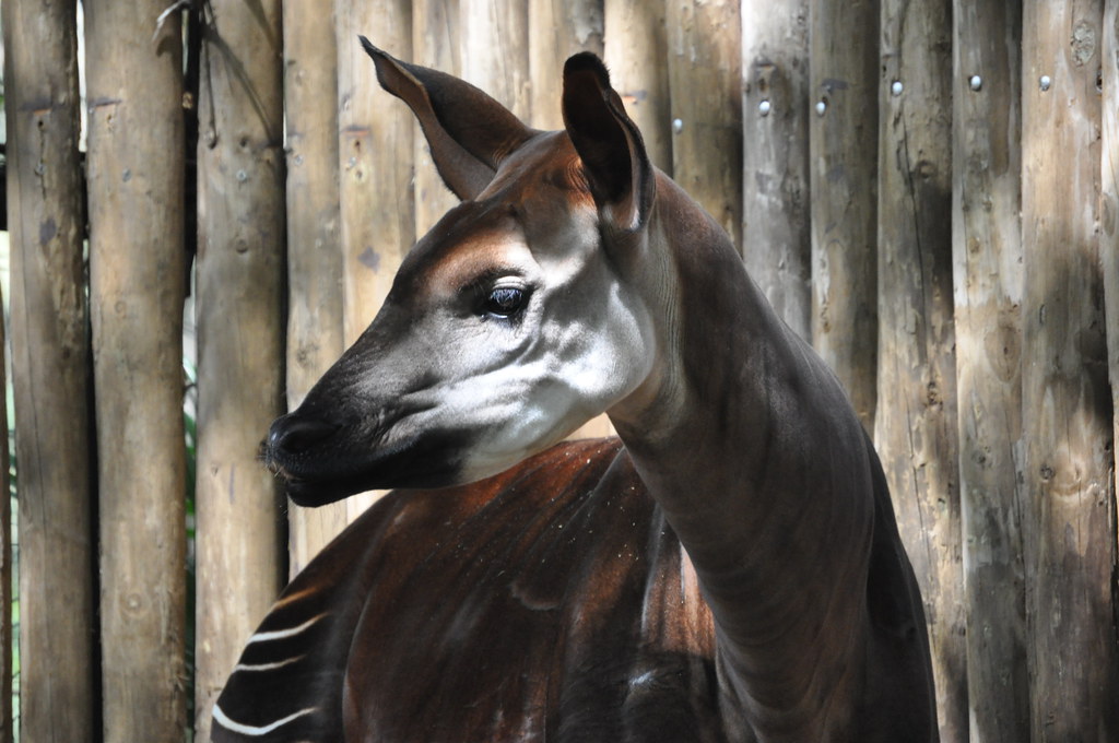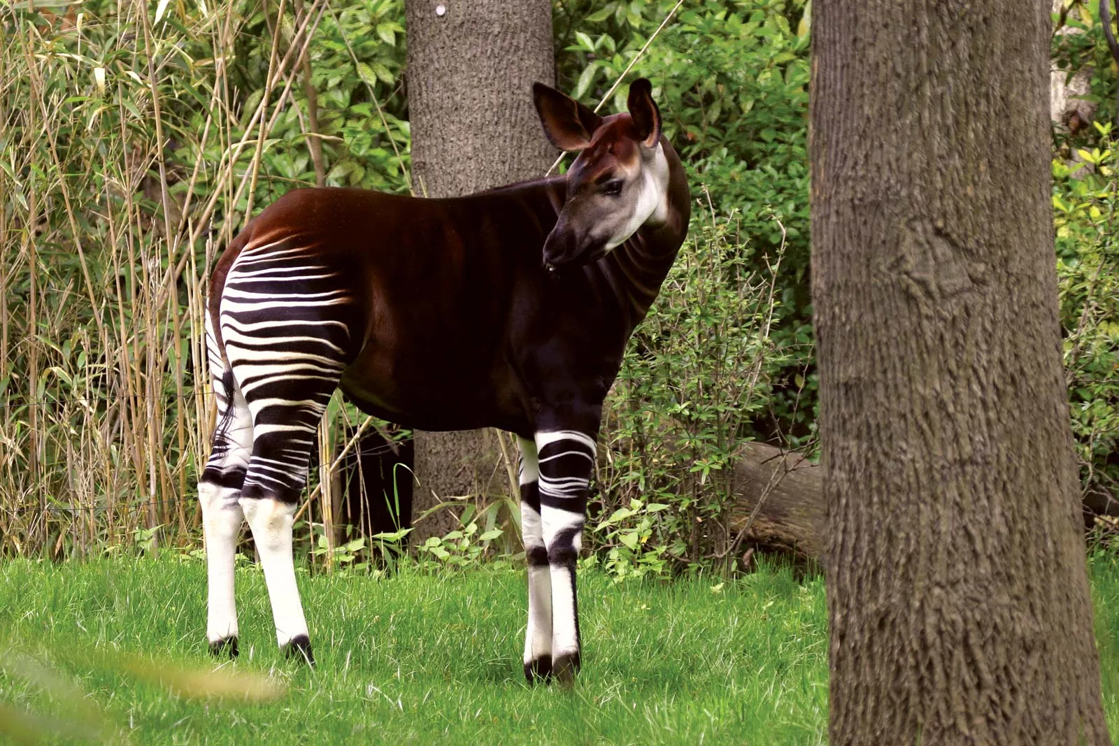Okapi, zürafalarla aynı familyadan gelir ve uzun boynu ve bembeyaz bacakları ile dikkat çeker.