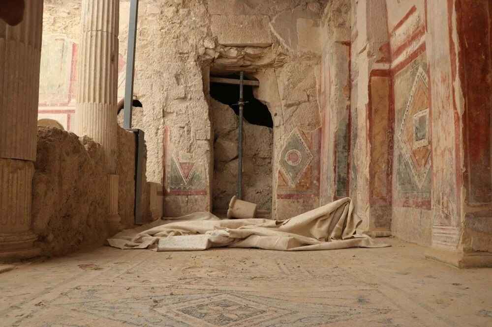 2007 yılında tespit edilen ve kazı çalışmaları süren bir odasının tabanında bulunan mozaikten dolayı 'Muzalar Evi' olarak adlandırılan bölgede 2 kaya odaya ulaşıldı.