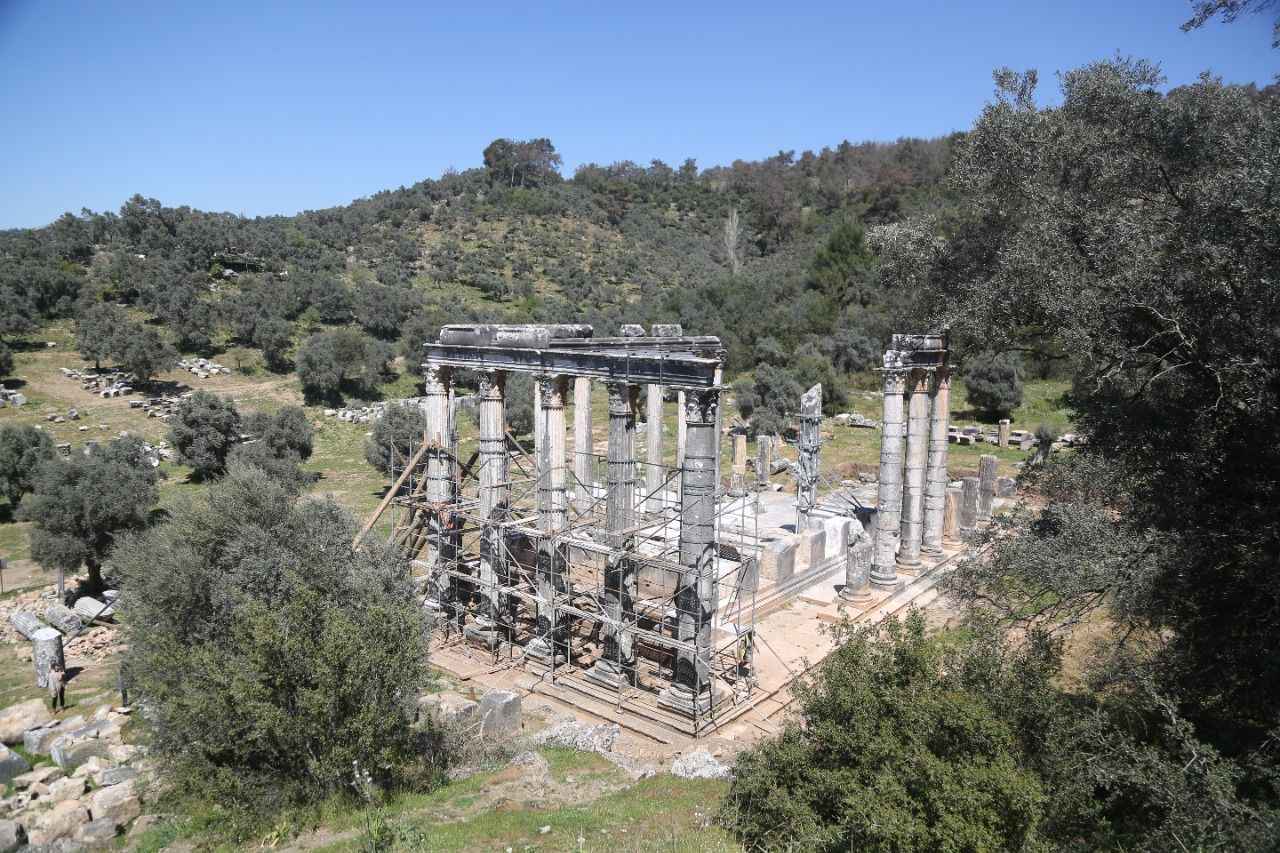 Restorasyonda tapınağa ait tasnif çalışmaları tamamlanmış yüzde 90 oranında orijinal mimari elemanları kullandıklarını belirten Kızıl, "Her cephede kullanabileceğimiz sütun tamburları, sütunlar, sütun başlıkları, arşitrav blokları ve friz, korniş blokları mevcuttu. Tüm bunların hepsini biz dantel gibi işleyerek belgeledik. Kayıtlara geçirdik." dedi.