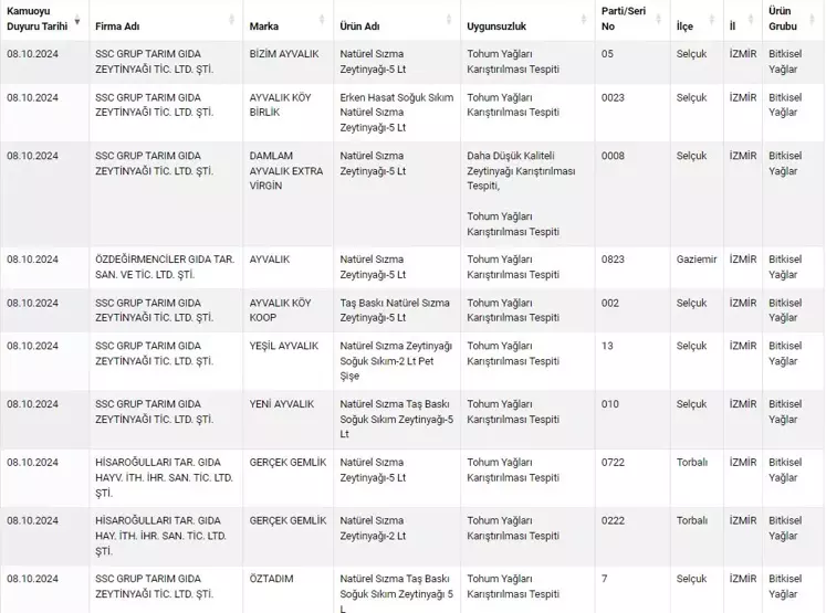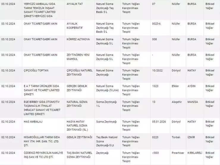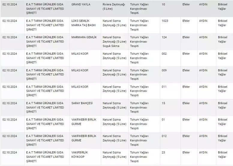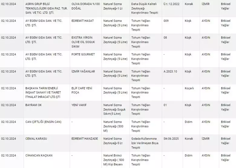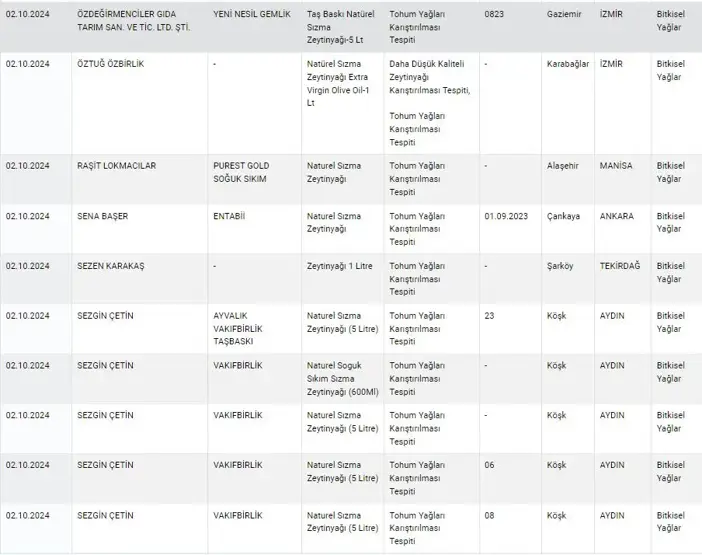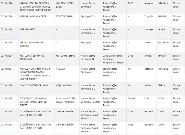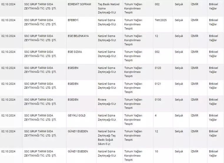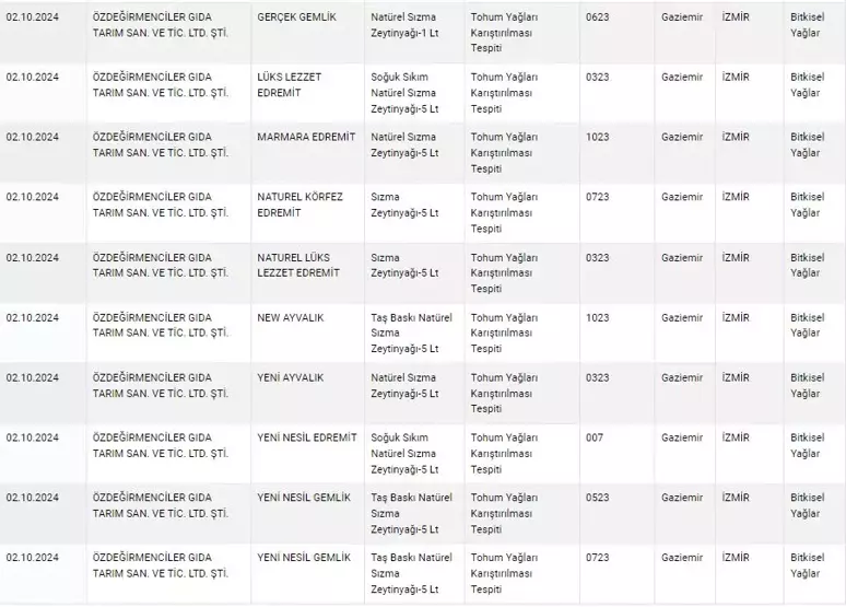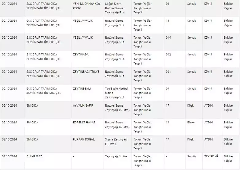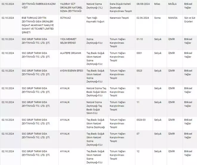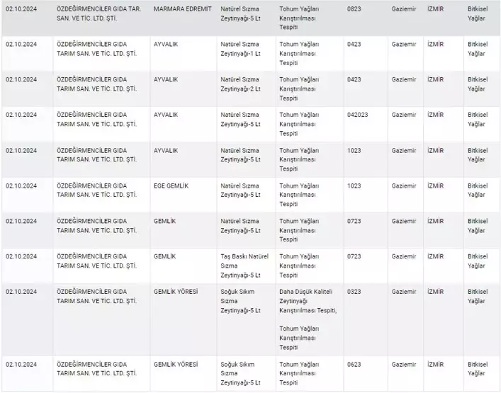 Taklit ve tağşiş yapılan ürünler arasında zeytinyağı dikkat çekiyor. Tespitlere göre, bazı firmalar zeytinyağına tohum yağları ekleyerek ürünlerin saflığını bozdu. Bu durumun, zeytinyağının kalitesini düşürdüğü ve tüketici yanıltıcı olduğu ifade edildi. Listeye dahil edilen zeytinyağı markalarının, "gerçek" veya "hakiki" gibi ifadeler kullanması, halkın güvenini istismar ettikleri şeklinde yorumlandı.
