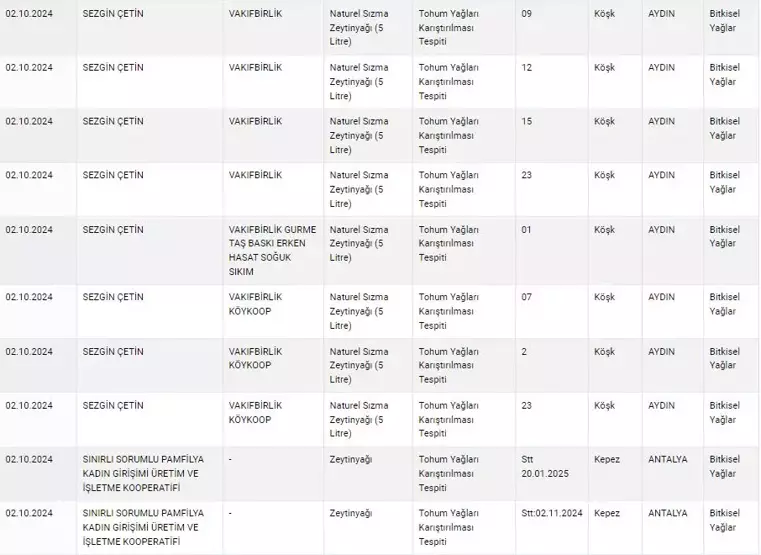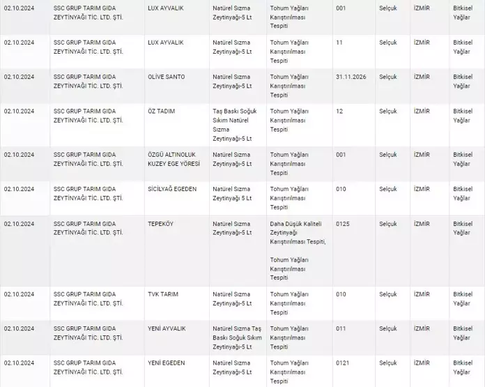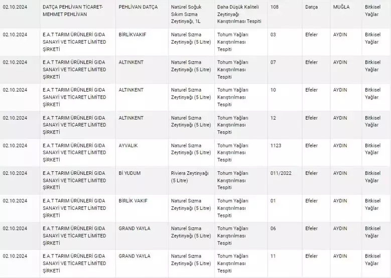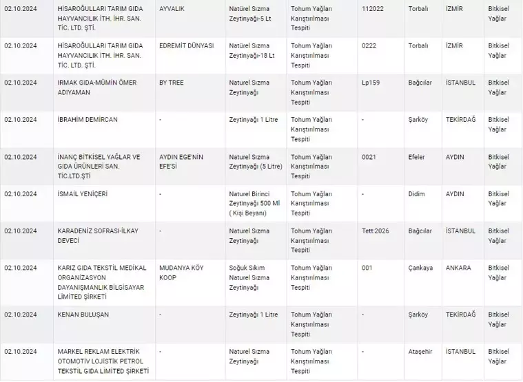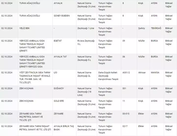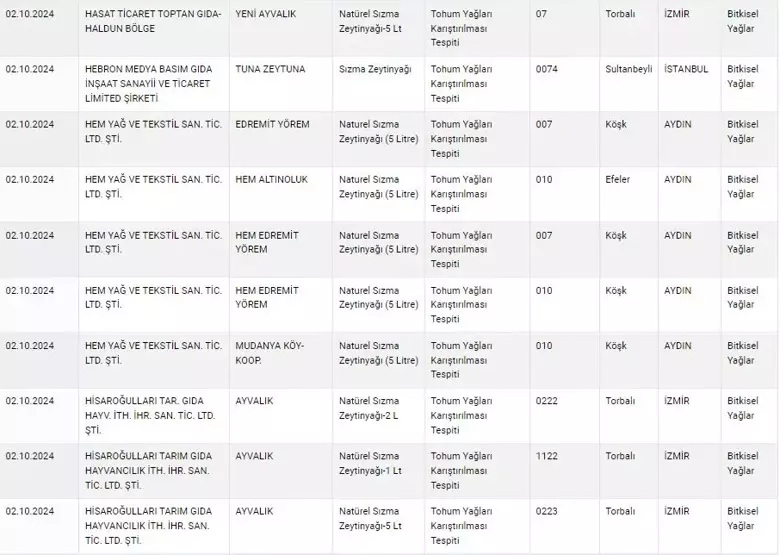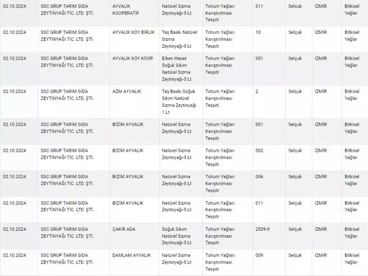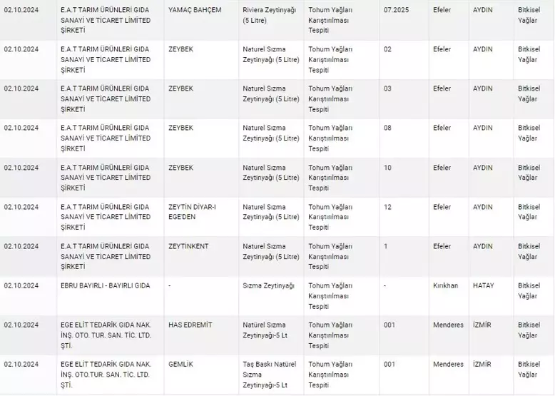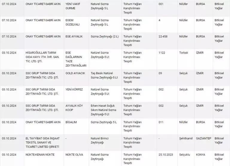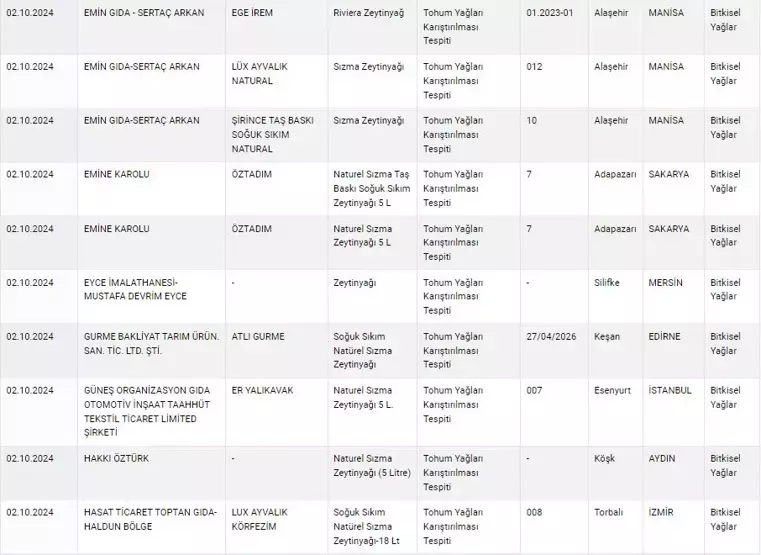 Taklit ve tağşiş yapılan ürünler arasında zeytinyağı dikkat çekiyor. Tespitlere göre, bazı firmalar zeytinyağına tohum yağları ekleyerek ürünlerin saflığını bozdu. Bu durumun, zeytinyağının kalitesini düşürdüğü ve tüketici yanıltıcı olduğu ifade edildi. Listeye dahil edilen zeytinyağı markalarının, "gerçek" veya "hakiki" gibi ifadeler kullanması, halkın güvenini istismar ettikleri şeklinde yorumlandı.