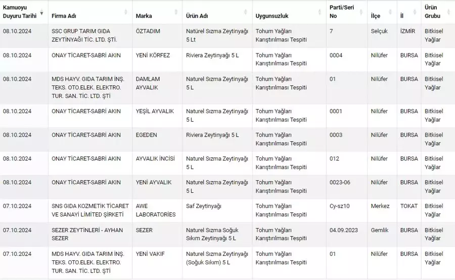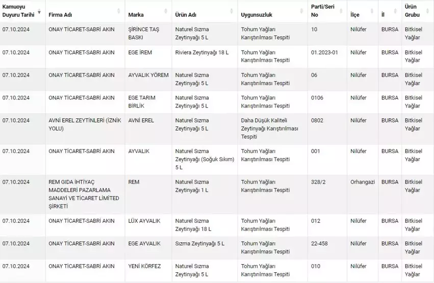 Tarım ve Orman Bakanlığı, halk sağlığını koruma amacıyla taklit ve tağşiş yapılan gıdaların listesini yenileyerek kamuoyuyla paylaştı. Bakanlık tarafından yapılan incelemeler sonucunda, gıdalarda hileli uygulamalar yapan ve halk sağlığını tehlikeye düşürebilecek firmaların isimleri açıklanarak vatandaşlar uyarıldı. Bu kapsamda, zeytinyağından ete, yoğurttan içeceklere kadar birçok ürün grubunda uygunsuzluk tespit edildi.