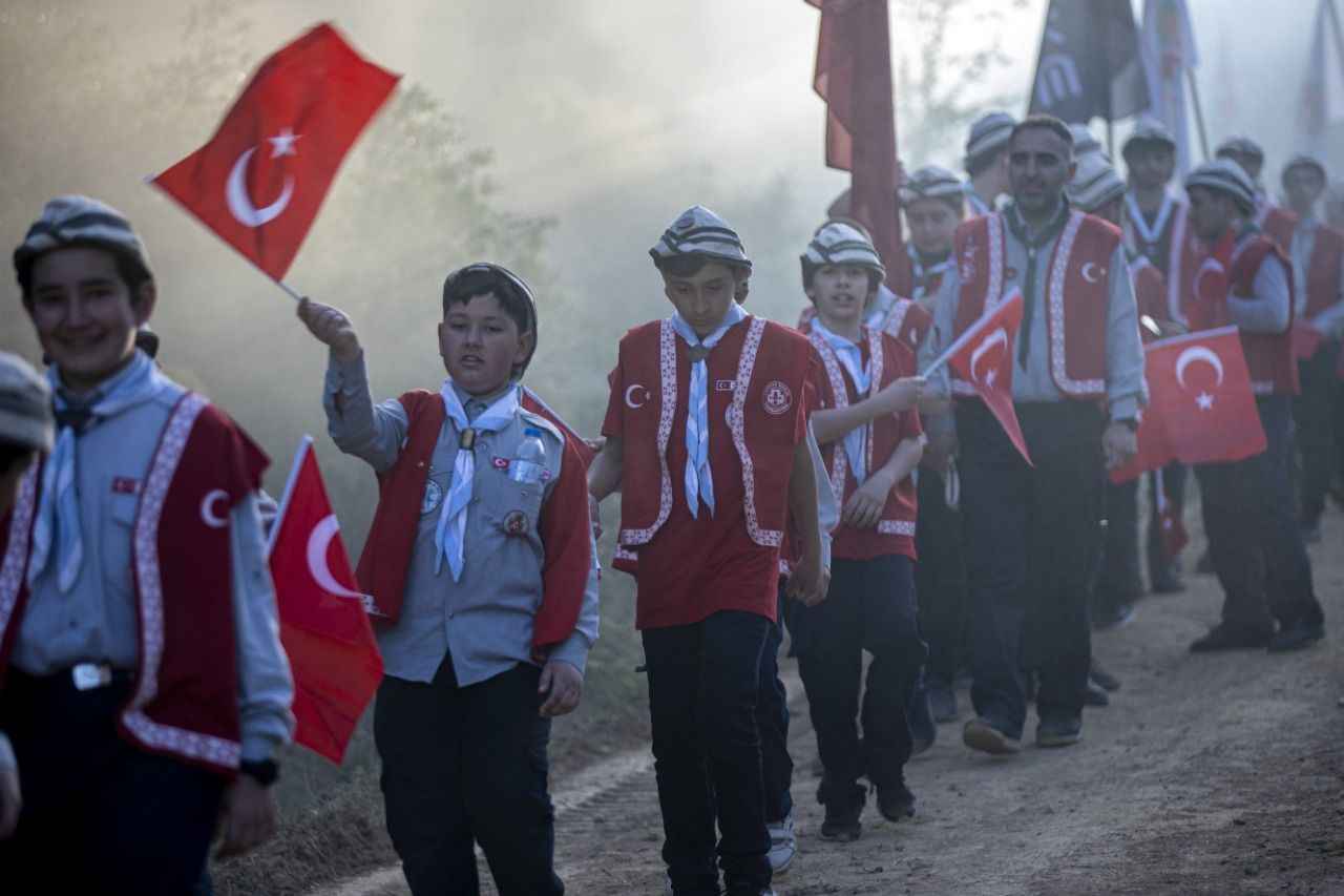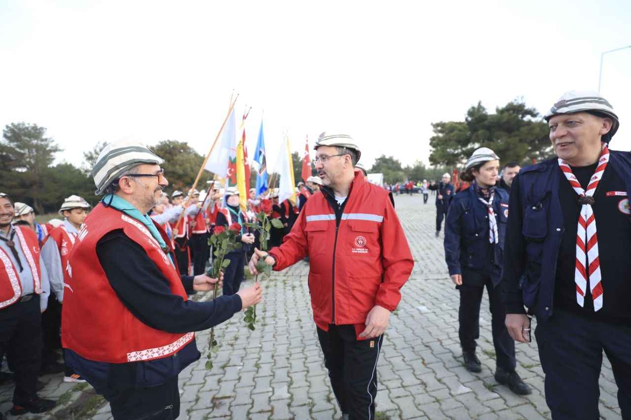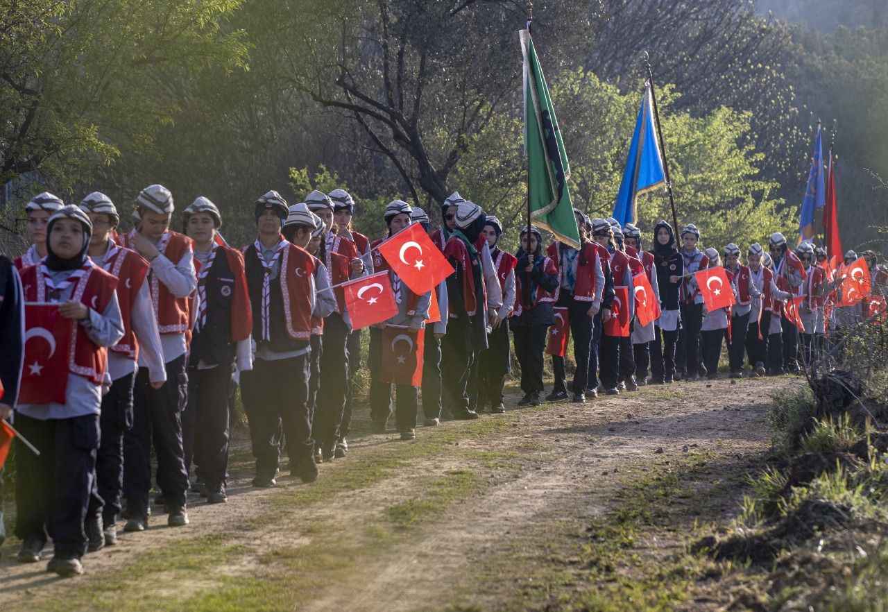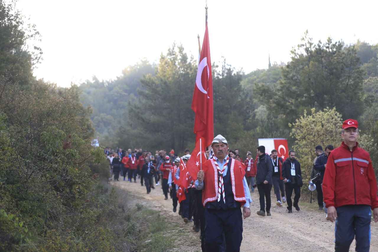 Tarihi Gelibolu Yarımadası Kocadere Köyü Kamp Alanı'nda, şafak vakti şehitlere saygı için gerçekleştirilen top atışları ile uyanan izciler ikram edilen ’yarma çorbası’ ile yürüyüşe başladı.