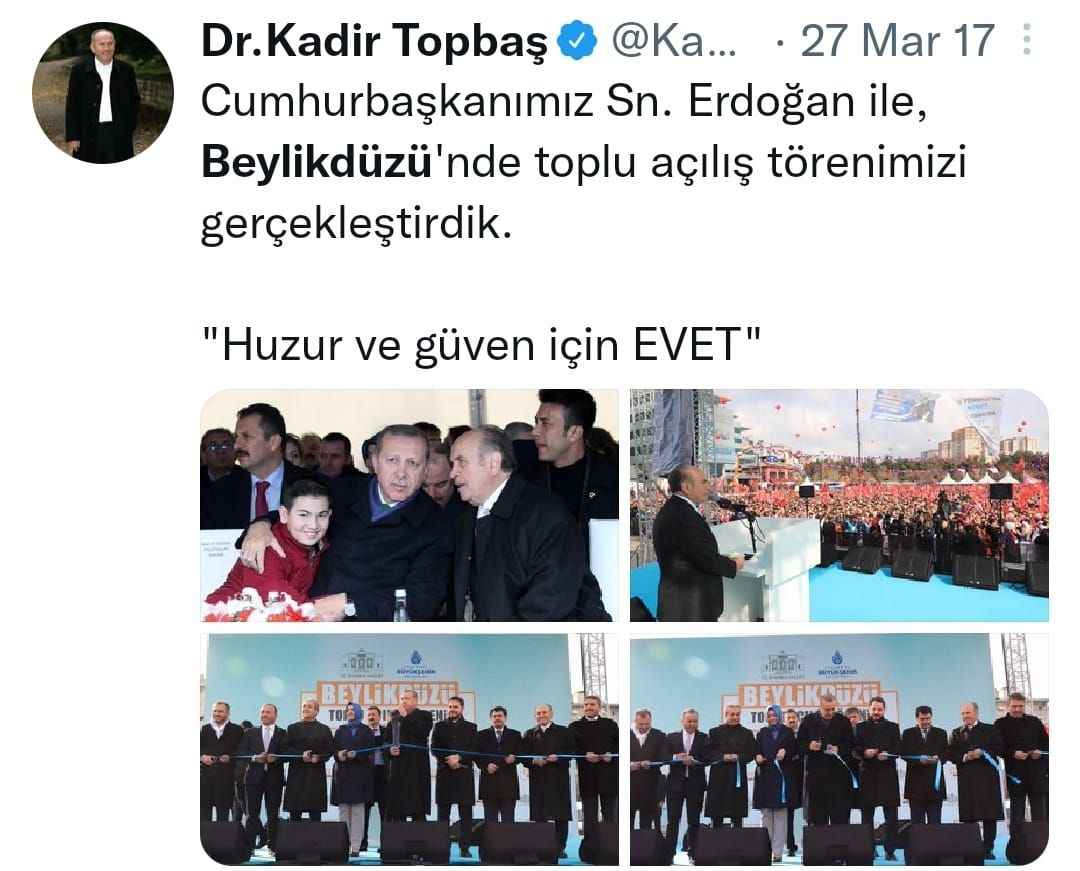 İşte dönemin İBB Başkanı merhum Kadir Topbaş'ın Beylikdüzü'ne gerçekleştirdiği ziyaretlere dair Twitter üzerinden yaptığı paylaşımları:
