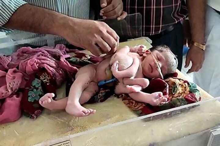 Hindistan'da doğan dört kollu ve dört bacaklı bebek, görüntüsü nedeniyle kısa sürede Uttar Pradesh eyaletinde çok ünlü hale geldi. Daha önce de benzer vakalar rastlanan Hindistan'da bu bebeğe gösterilen ilgi ise diğerlerinden daha farklı oldu.