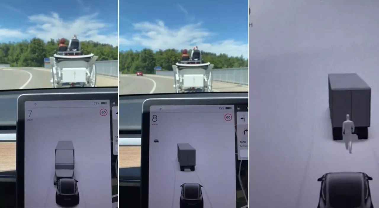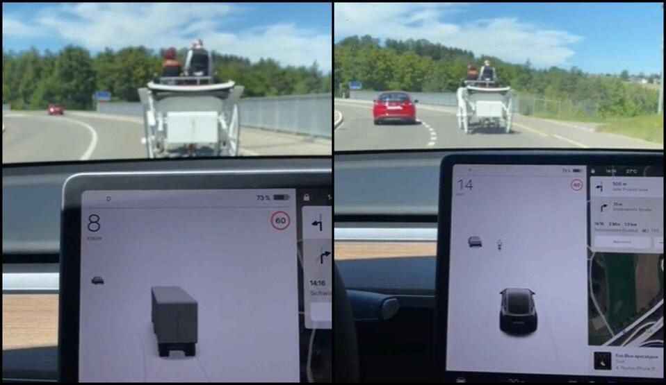 Tesla’nın at arabasını algılamaya çalıştığı anlar, araç sürücüsünün kamerasına yansıdı. Sosyal medyada paylaşılan görüntülerde at arabasını önce bir tır, ardından bir kamyonet, üzerine doğru gelen bir tır ve hatta arkasında bir insanın yürüdüğü bir tır olarak algıladığı görüldü.