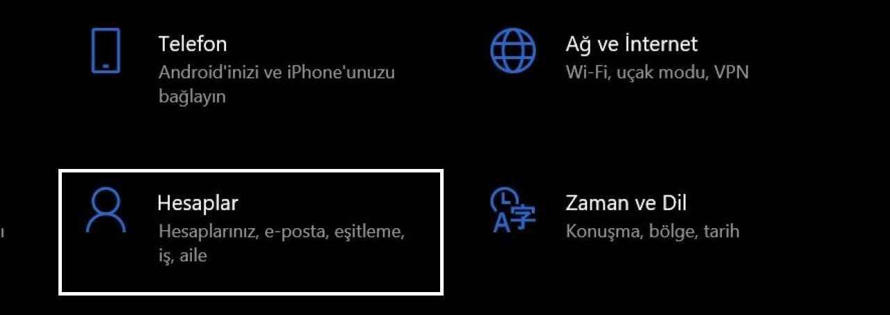 Daha sonra ”Hesaplar” menüsüne gidin.