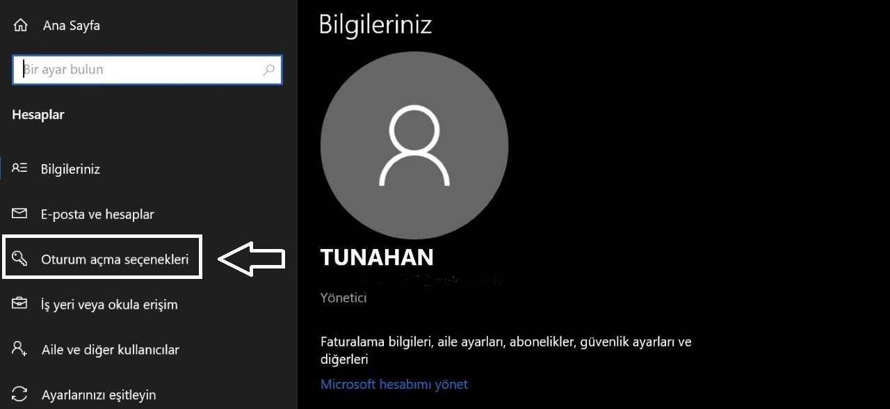 Ekranın sol tarafında yer alan ”Oturum açma yöntemleri” seçeneğine tıklayın.
