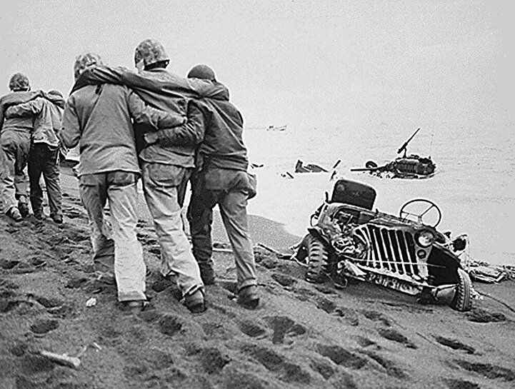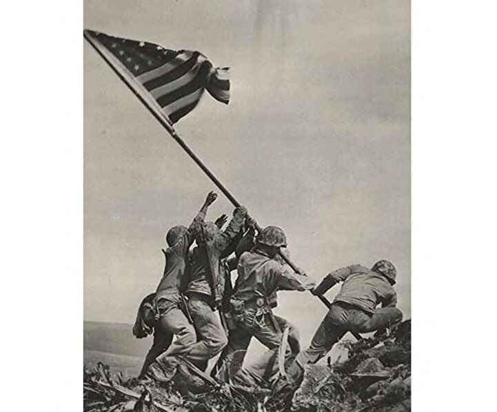 ABD Deniz Piyadeleri’nin savaş sırasında Amerikan bayrağını Iwo Jima'ya diktiğini gösteren İkinci Dünya Savaşı fotoğrafı ise , Iwo Jima Savaşı sırasında Suribachi Yanardağı'nın zirvesinde çekilmişti.