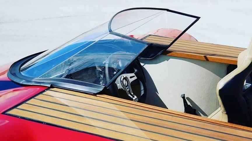 Üstü açık spor aracın yerden 18 santimetre yükseklikte olan tasarımıyla suya girdiği anda ortaya çıkan hava yastığı sayesinde suda rahatlıkla gidebildiği vurgulandı.