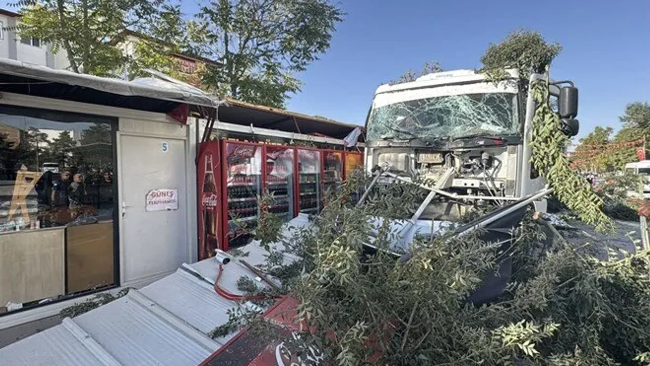 Malatya'nın Yeşilyurt ilçesinin İnönü Caddesi'nde sürücüsünün kimliği henüz öğrenilemeyen kamyon, freni arızalanınca kontrolden çıktı.