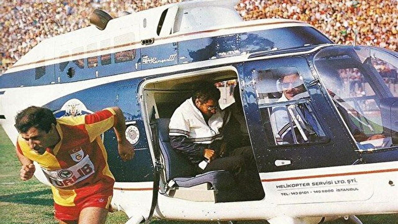 Helikopterle yeşil sahaya inen Terim'in jübilesinden bir görüntü, Galatasaray'ın resmi X hesabı üzerinden paylaşıldı.
