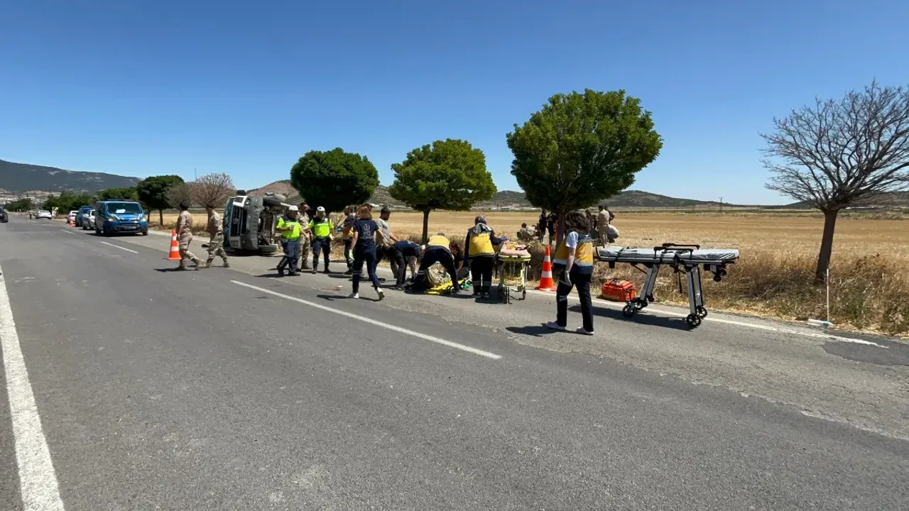 Kazada minibüs sürücüsü yaralanırken, ihbar üzerine bölgeye jandarma ekipleri sevk edildi.