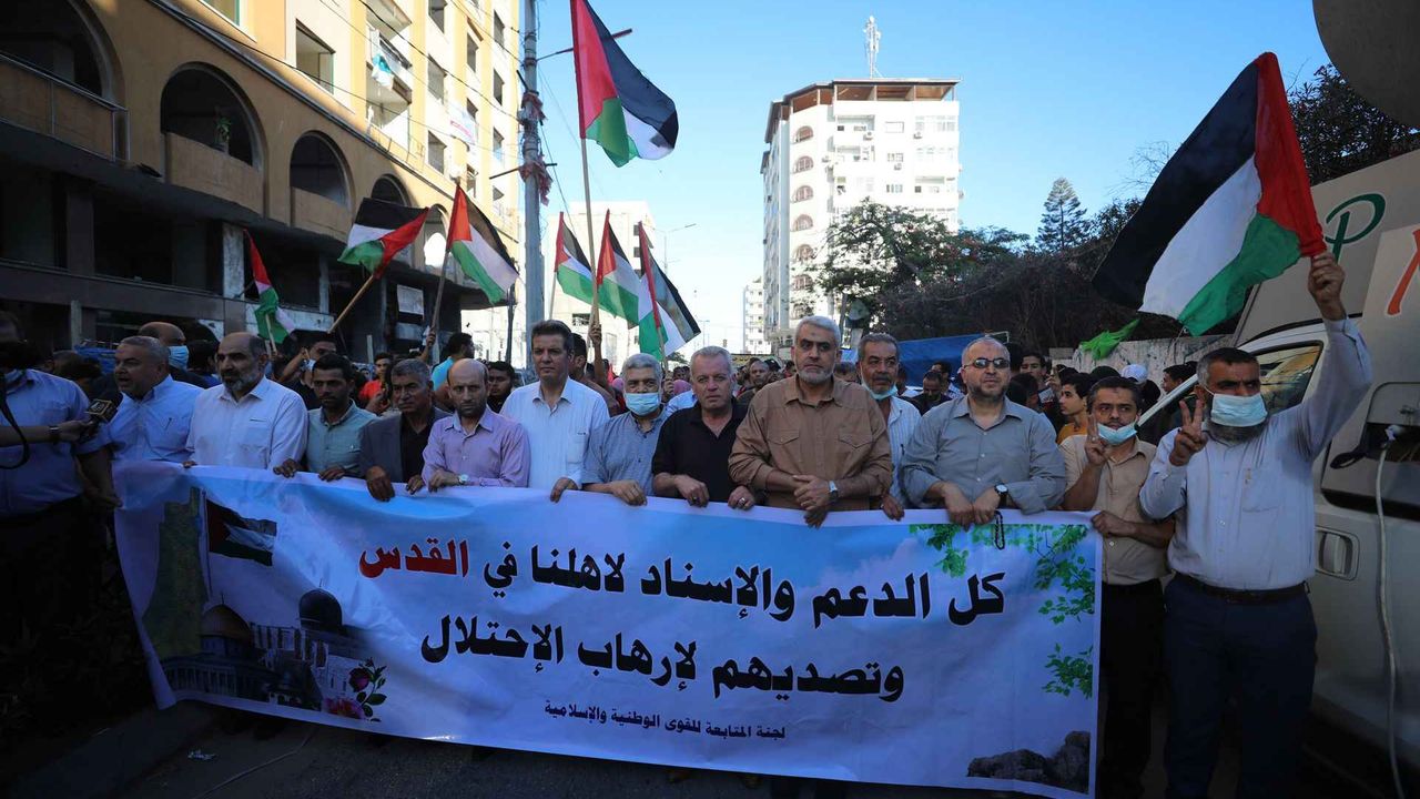 Filistinli grupların çağrısı üzerine çok sayıda kişi, aşırı sağcı Yahudilerin Doğu Kudüs'teki "Bayrak Yürüyüşü"ne tepki göstermek için Gazze'de bir araya geldi.