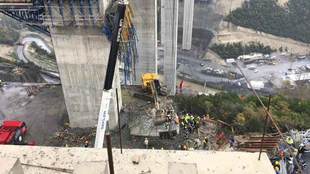 Kuzey Marmara Otoyolu’nun Kocaeli-Gebze kesimindeki viyadük çalışmaları sırasında beton blok çöktü.