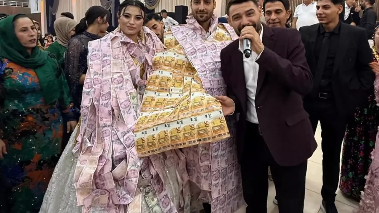 Kızıltepe ilçesinde hafta sonu yapılan aşiret düğününe Avrupa'dan gelen Nehir Vinç, damat olan kardeşi Halil İbrahim ile geline, valizle getirdiği 50 avro ve 200 Türk lirası banknotlarıyla yaptırdığı yeleği giydirdi.