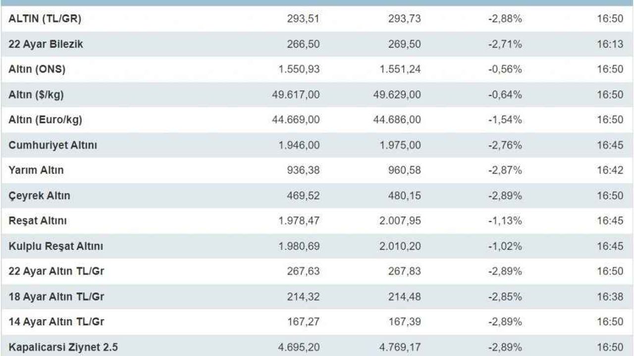 Dün 309 lira seviyelerini test eden gram altın, yüzde 0,88 değer kaybı yaşayarak 293 lira seviyelerine kadar geriledi.