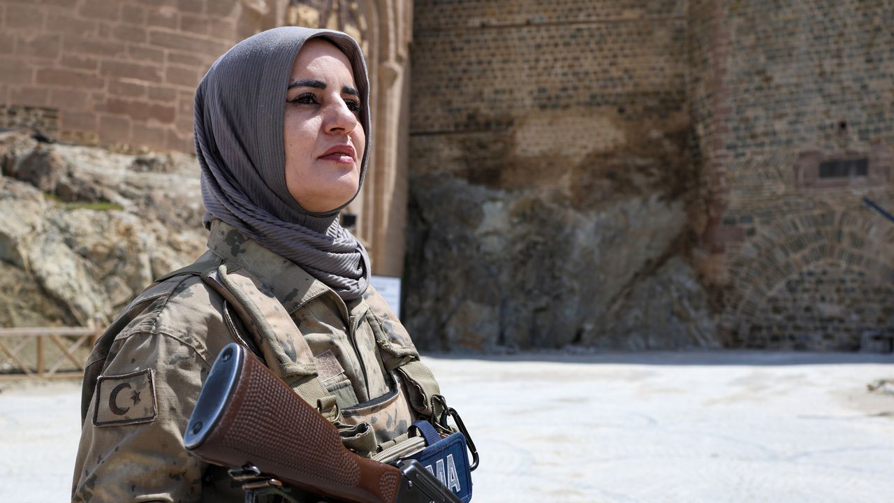Van’ın Gürpınar ilçesinde görev yapan güvenlik korucusu Nazan Gülce, zorlu coğrafyada Mehmetçik’le omuz omuza görev yapıyor. Üç çocuk annesi olan 42 yaşındaki Gülce, hem evinin sorumluluğunu üstleniyor hem de vatan savunmasında aktif görev alıyor.