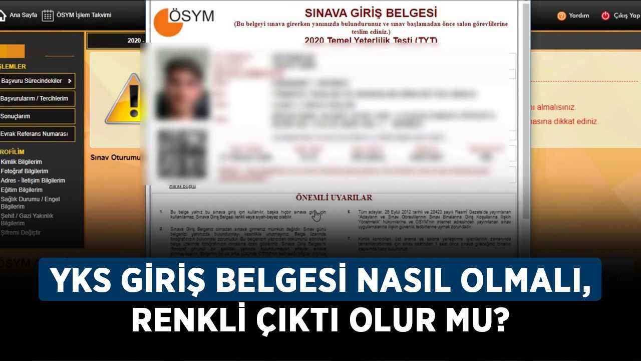 YKS GİRİŞ BELGESİ NASIL OLMALI, RENKLİ ÇIKTI OLUR MU?