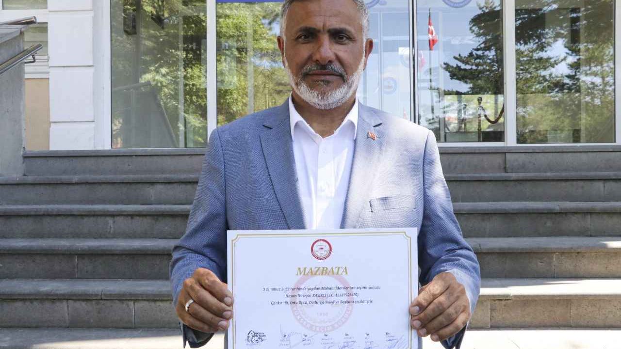 Yeniden belde statüsü kazanan Çankırı'nın Orta ilçesine bağlı Dodurga'da yapılan seçimi kazanan AK Parti adayı Hasan Hüseyin Kaşıkcı, mazbatasını aldı.