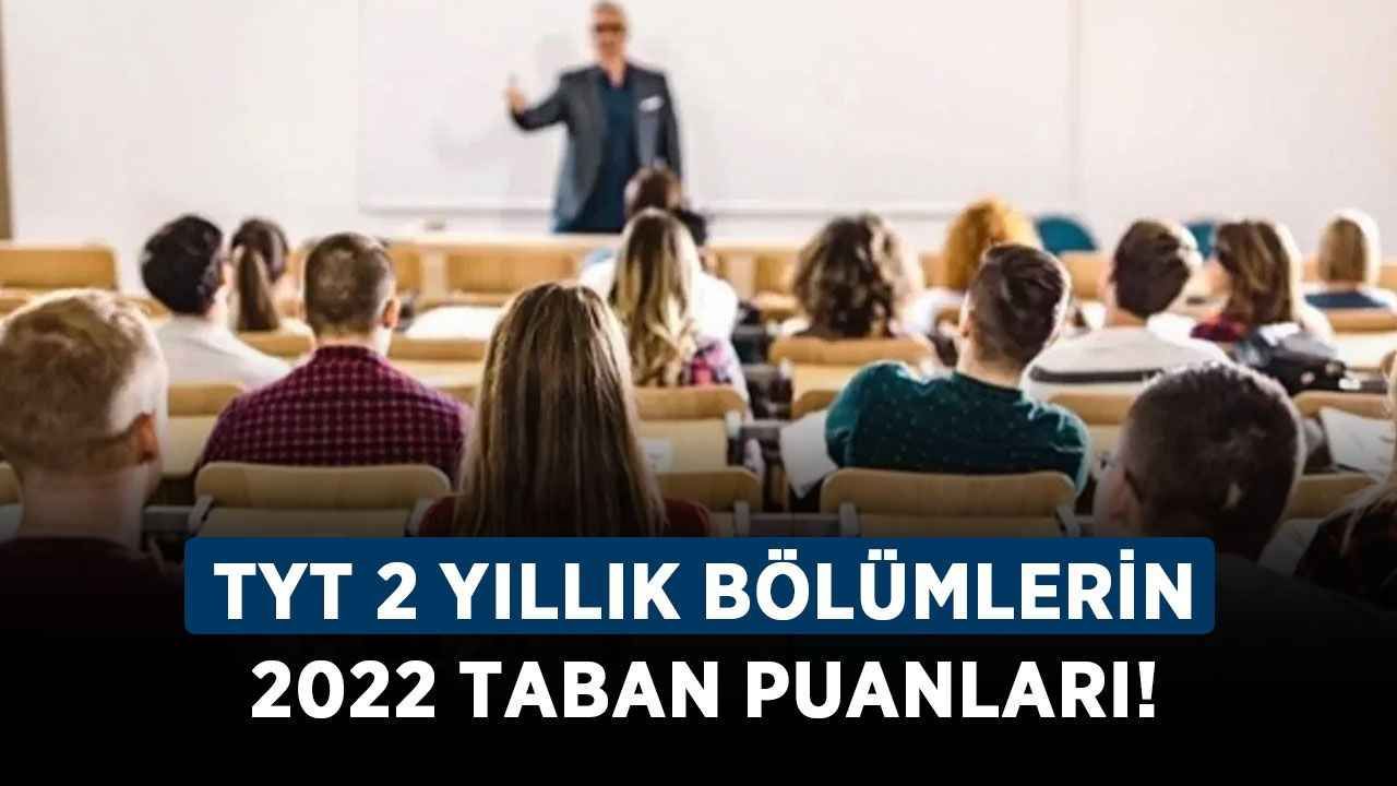 YKS sınav sonuçları bu sabah erişime açılırken gözler 2 yıllık önlisans taban puanları listesine çevrildi. TYT puanlarıyla tercihlerini gerçekleştirecek olan adaylar ÖSYM tarafından duyurulan puanları incelemeye başladı. 2 yıllık önlisans bölümlerinin taban puanları her yıl Ölçme seçme ve yerleştirme merkezi tarafından duyuruluyor. İşte 2 yıllık üniversite bölümlerin taban puanları! TYT 2 yıllık bölümlerin 2022 taban puanları!..