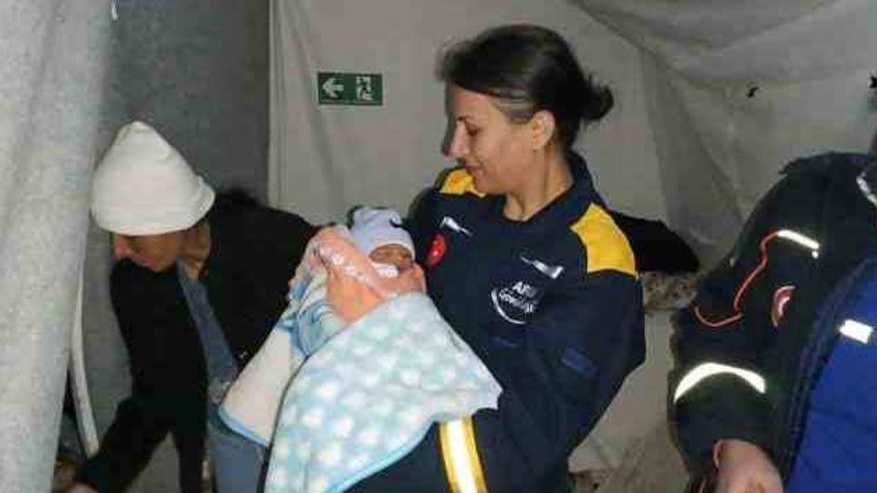 AFAD İzmir ile beraber deprem bölgesi olan Osmaniye'deki Atatürk Lisesi çadır alanında görev alan Milli Eğitim Arama Kurtarma (MEBAKUB) İzmir ekibi, deprem sonrası bir bebeğin dünyaya geldiğini sosyal medya hesabından duyurdu.