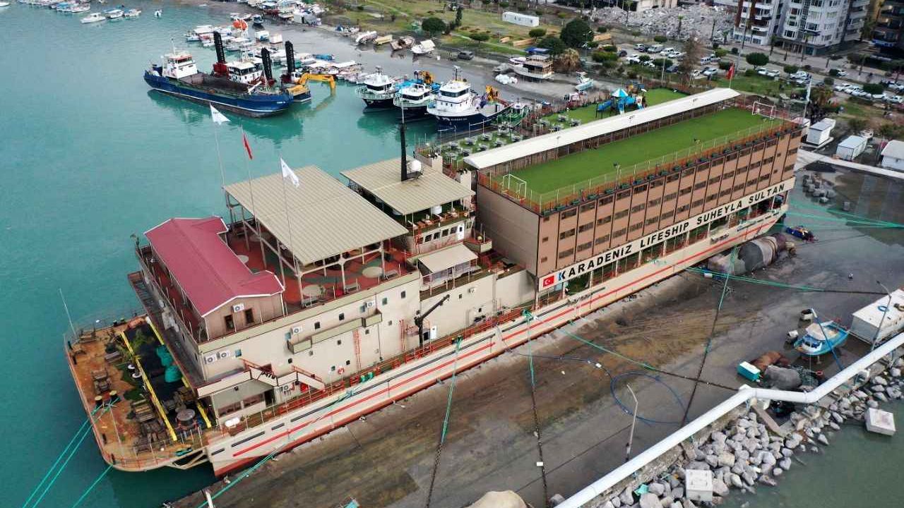 Ulaştırma ve Altyapı Bakanlığınca depremzedelerin kullanımına sunulmak üzere İskenderun Körfezi'nde konuşlanan 1500 kişi kapasiteli gemide son hazırlıklar tamamlandı. 6 Şubat'taki depremlerden etkilenen ve kaldıkları yerlerden otobüslerle limana getirilen afetzedeler, askeri yetkililer tarafından karşılanarak kayıtları yapıldıktan sonra kalacakları odalara yerleştirildi.