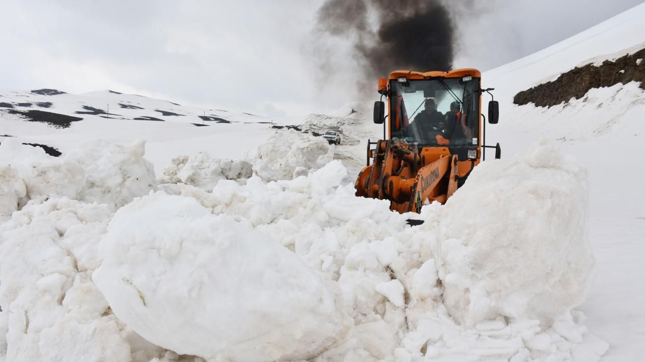 Zorlu arazi şartlarında kar kalınlığının yer yer 2 metreyi bulduğu yolu açmak için mesai yapan ekipler, bazı noktalarda kar tabakasının sertleşmesi nedeniyle güçlükle ilerleyebiliyor.