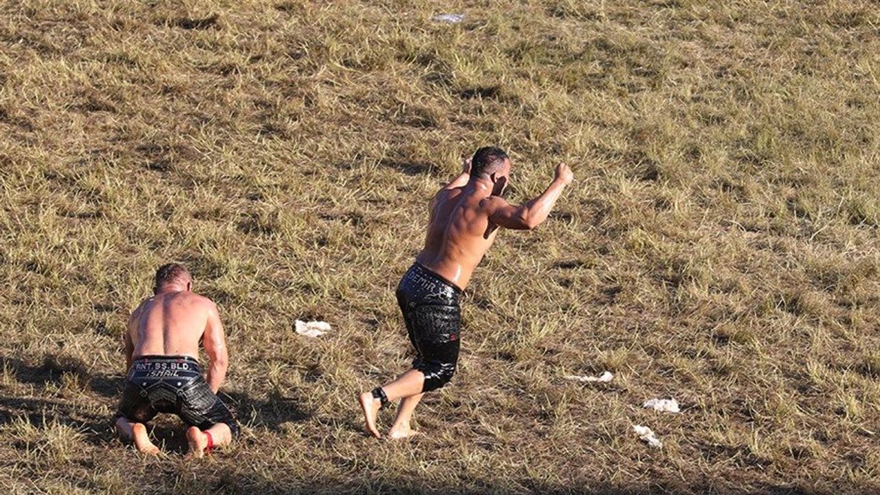 Balaban ve Zeybek kol bağlaması sonrası peşreve çıkarken, iki başpehlivan da izleyiciler tarafından coşkuyla karşılandı.