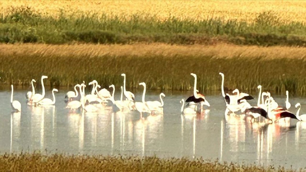 Doğa Koruma ve Milli Parklar 11. Bölge Müdürlüğünün sosyal medya hesabından yapılan paylaşımda, flamingoların bir su birikintisindeki görüntüsüne yer verildi.
