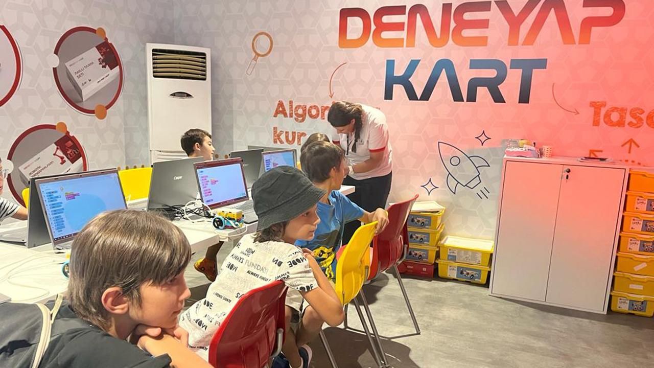 "Keşif Kampüsü"nde çocuklara robotların kullanımına ilişkin eğitim sağlanıyor.