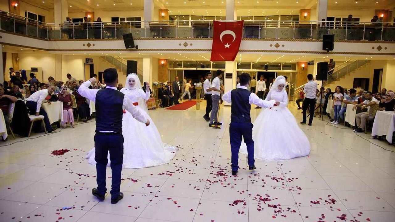 Hatay’ın Antakya ilçesinde tek yumurta ikizi Mehmet Ali ve Aziz Ramazan Güleç kardeşler, kendileri gibi tek yumurta ikizi olan İpek ve Dilek Küçük kardeşlerle dünya evine girdi.