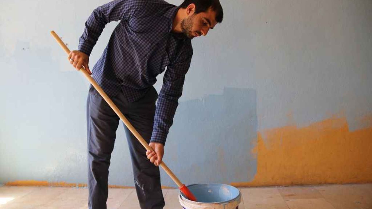 Diyarbakır’ın Çınar ilçesinde fedakar 13 öğretmen köy okulunu boyuyor.