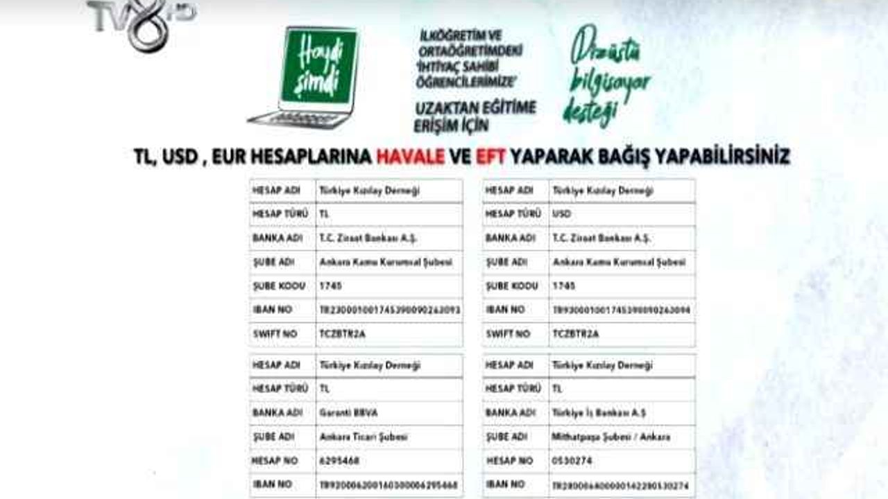 Uzaktan eğitim alacak ancak bilgisayarı olmayan öğrenciler için Acun Ilıacalı, “Haydi şimdi” kampanyasını başlattı. TV8 ekranlarından canlı olarak katılım sağlanan bilgisayar kampanyasına Milli Eğitim Bakanlığı’nın da destek veriyor. Kampanyaya SMS yoluyla katılmak isteyenler “EĞİTİM” yazıp 2868’e mesaj göndermeleri yetiyor. Diğer yandan Türk Kızılay Mobil Çağrı merkezini “168”i arayarak bağış yapılabiliyor.