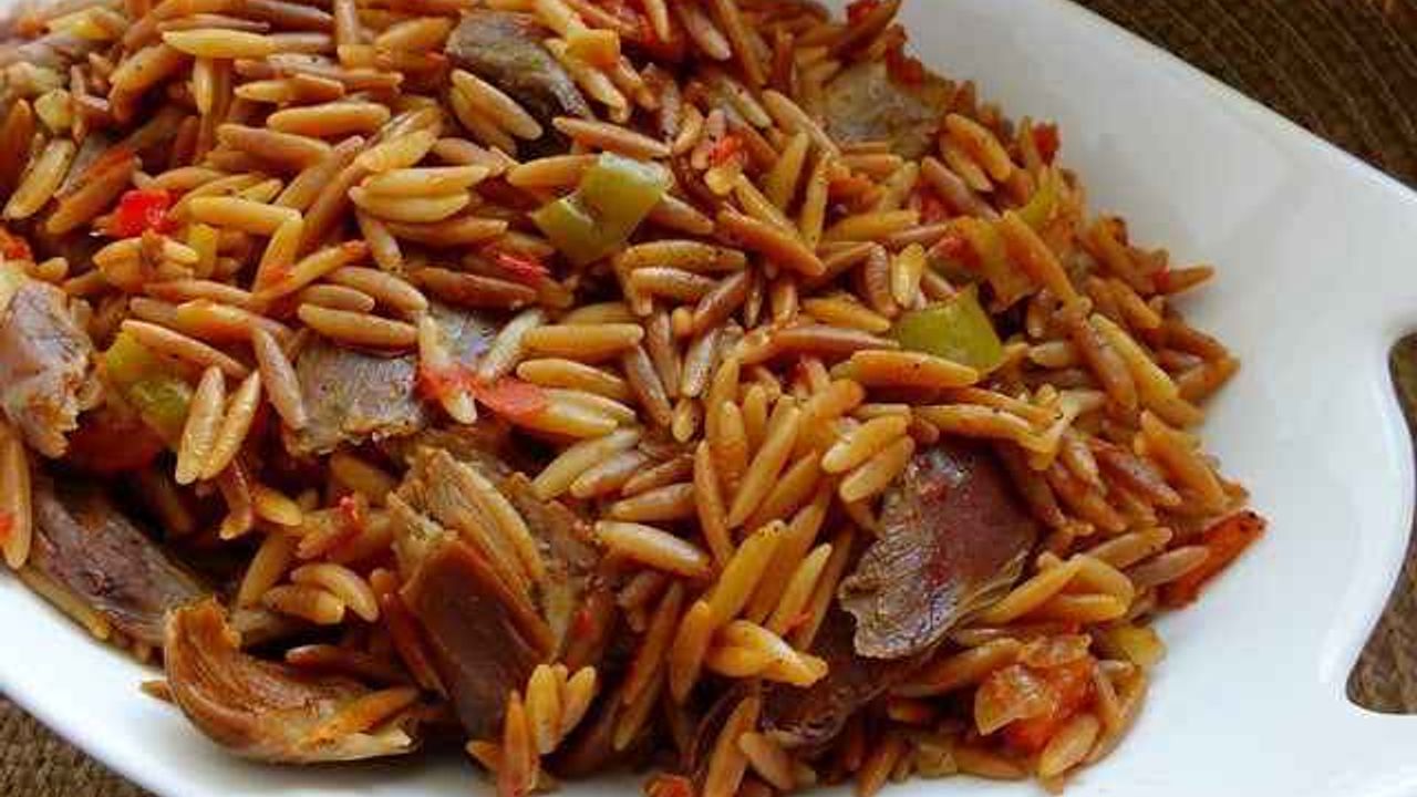 Öte yanda ayrı bir tavada şehriyeleri kavuruyoruz. Rengi dönünce etin üzerine ekliyoruz ve güzelce karıştırmıyoruz. Suyu da ilave edip kapağını da kapatarak kısık ateşte pişmeye bırakıyoruz. Suyunu çektikten sonra 15 dakika kadar dinlendirip servis ediyoruz.