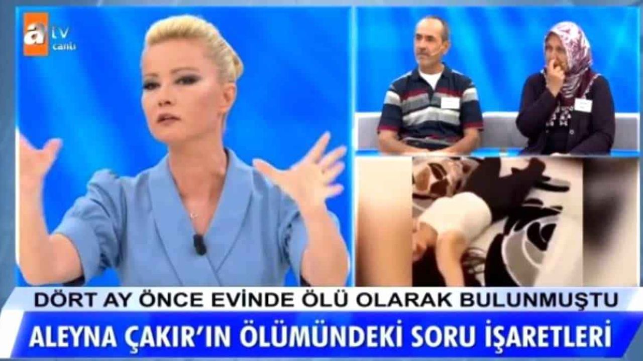 Ölümü şüpheli bulunan Aleyna Çakır’ın ses kayıtları ortaya çıktı. Genç kızın eski komşusu Aleyna’nın şiddet gördüğü sıradaki ses kaydını Müge Anlı’da dinletti. Kızlarının yardım çığlıklarını duyan ailesi gözyaşlarına boğuldu. Adalet Bakanlığına seslenen Müge Anlı, Aleyna Çakır’ın ses kaydının dosyaya eklenmesini talep etti.