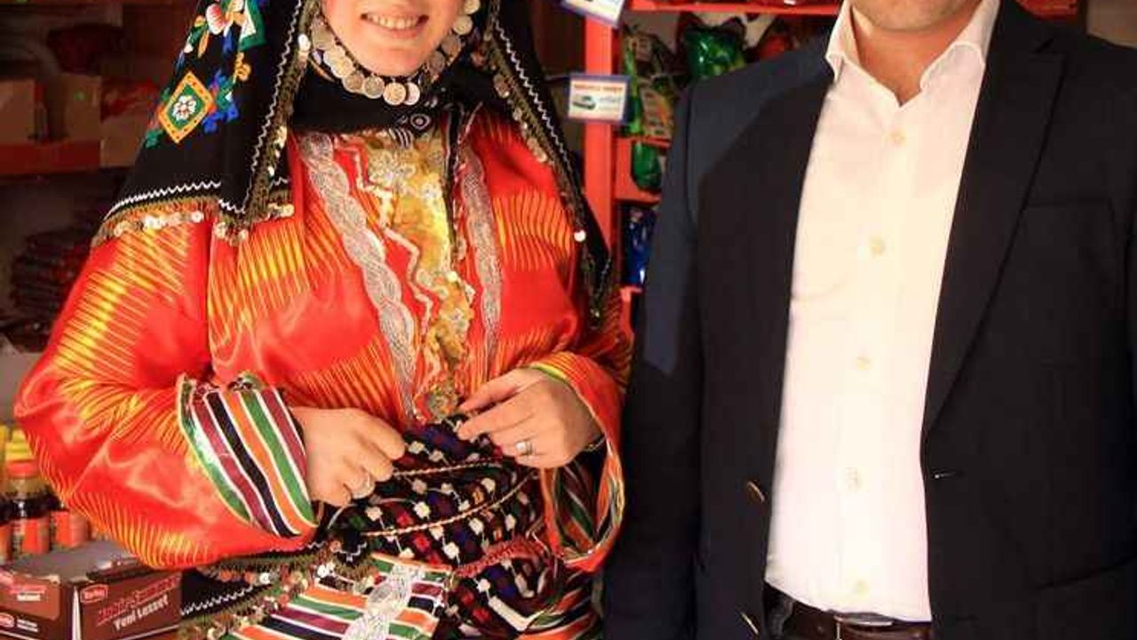 Kaymakam Bulut’un eşi Berna Bulut da köy ziyareti sırasında yöresel kıyafet giydi.