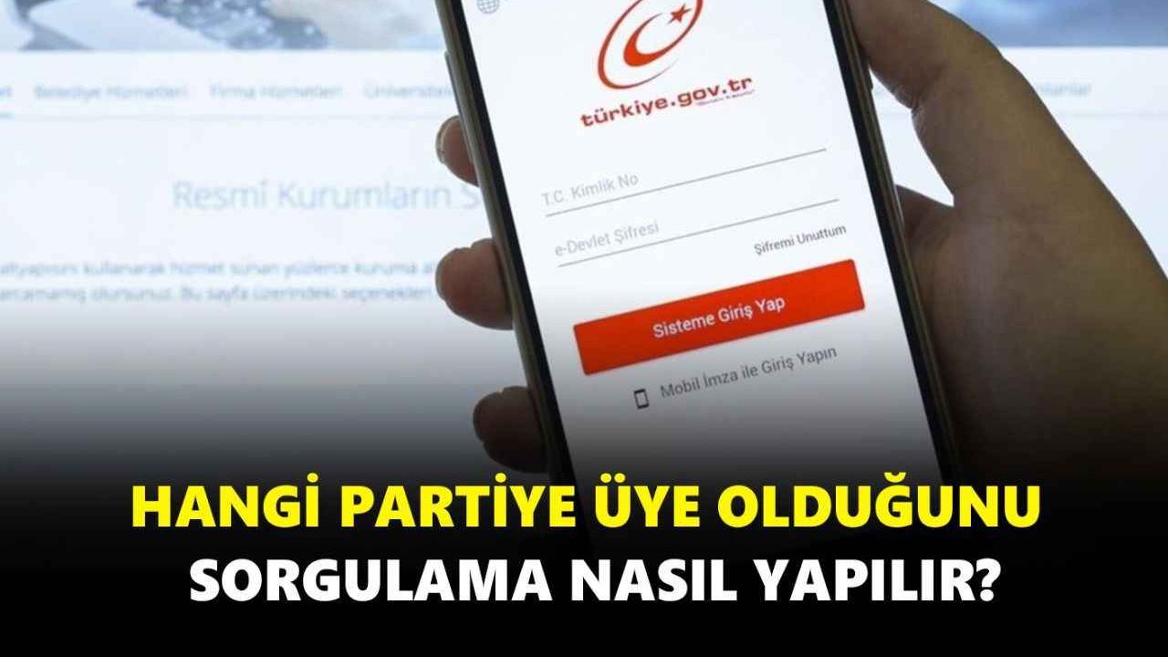 Hangi partiye üye olduğunu sorgulama işlemi E devlet hizmet partalı üzerinden gerçekleştirilir. E devlet sitesine giriş yapabilmek için kullanıcı bilgilerinin, şifre ve T.C kimlik numarasının sisteme doğru bir şekilde girilmesi gerekir. Şifreniz yoksa PTT şubelerine giderek 2 TL işlem ücreti karşılığında şifre alabilirsiniz. Şifrenizle beraber www.turkiye.gov.tr adresini tıklayarak sisteme kolayca giriş yapabilirsiniz. Hangi partiye üye olduğunu sorgulama için siyasi partiye üye olup olmadığınızı ya da hangi partiye üye olduğunuzu öğrenmek için ‘’siyasi parti üyelik sorgulama’’ yazarak sistem üzerinde parti üyeliğini analiz edebilirsiniz. Siyasi parti üyeliği ya da partiden üyelik istifanızın kabul edilip edilmediğini araç çubuğuna siyasi parti üyelik iptali yazarak siyasi parti üyelik işlemlerinizin aktif olup olmadığını güncel olarak takip edebilirsiniz.