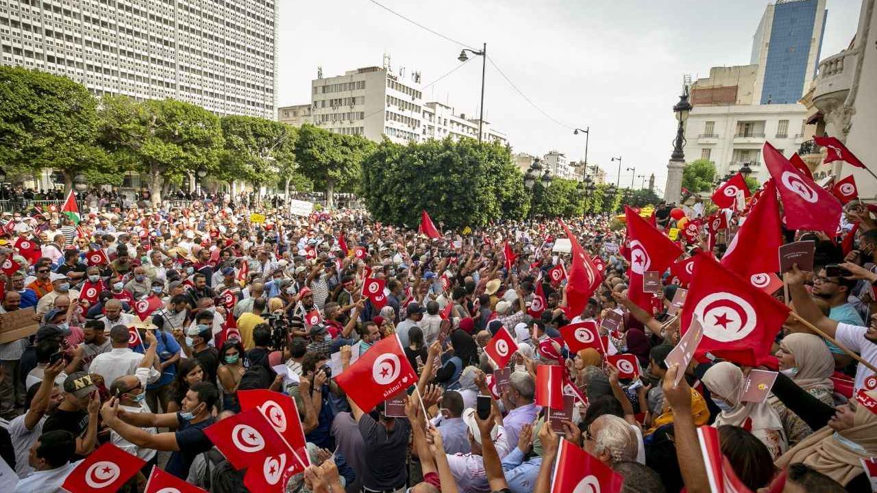 Tunus'un başkentinde binlerce kişi, Cumhurbaşkanı Kays Said'in 25 Temmuz'da aldığı yasama, yürütme ve yargı yetkilerini tek elde toplayan kararların yürürlükten kaldırılması talebiyle gösteri düzenledi.