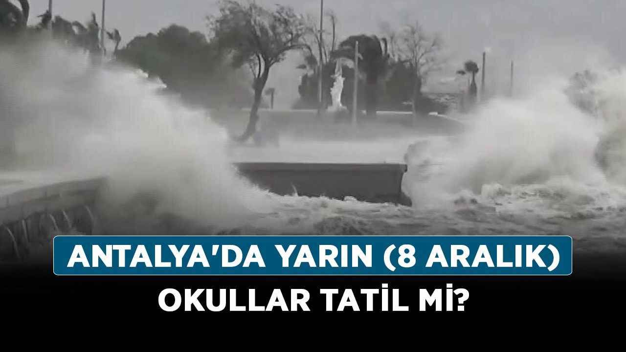 Antalya'da yarın (8 Aralık Çarşamba) okullar tatil mi? Antalya’da eğitime ara verildi mi? soruları sıkça araştırılmaya başlandı. Antalya Valiliği tarafından yapılan son dakika açıklamasında kuvvetli rüzgar ve fırtına uyarısı yapıldı. Kuvvetli rüzgar ve fırtınanın gece saatlerinden sonra etkisini kaybedeceği de açıklamada yer aldı. Yaşanan bu gelişmenin ardından yüz binlerce öğrenci okulların tatil edilip edilmeyeceğini merak ediyor. Peki, Antalya'da yarın (8 Aralık Çarşamba) okullar tatil mi? Antalya’da eğitime ara verildi mi? işte konunun detayları haberimizde…