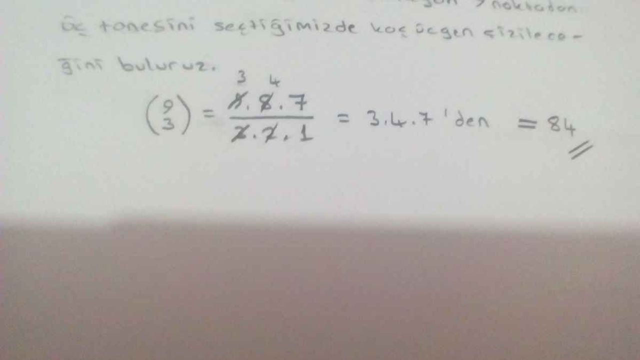 Bunu bulmak için 9'un 3'lü kombinasyonu işlemi yapılmalıdır.