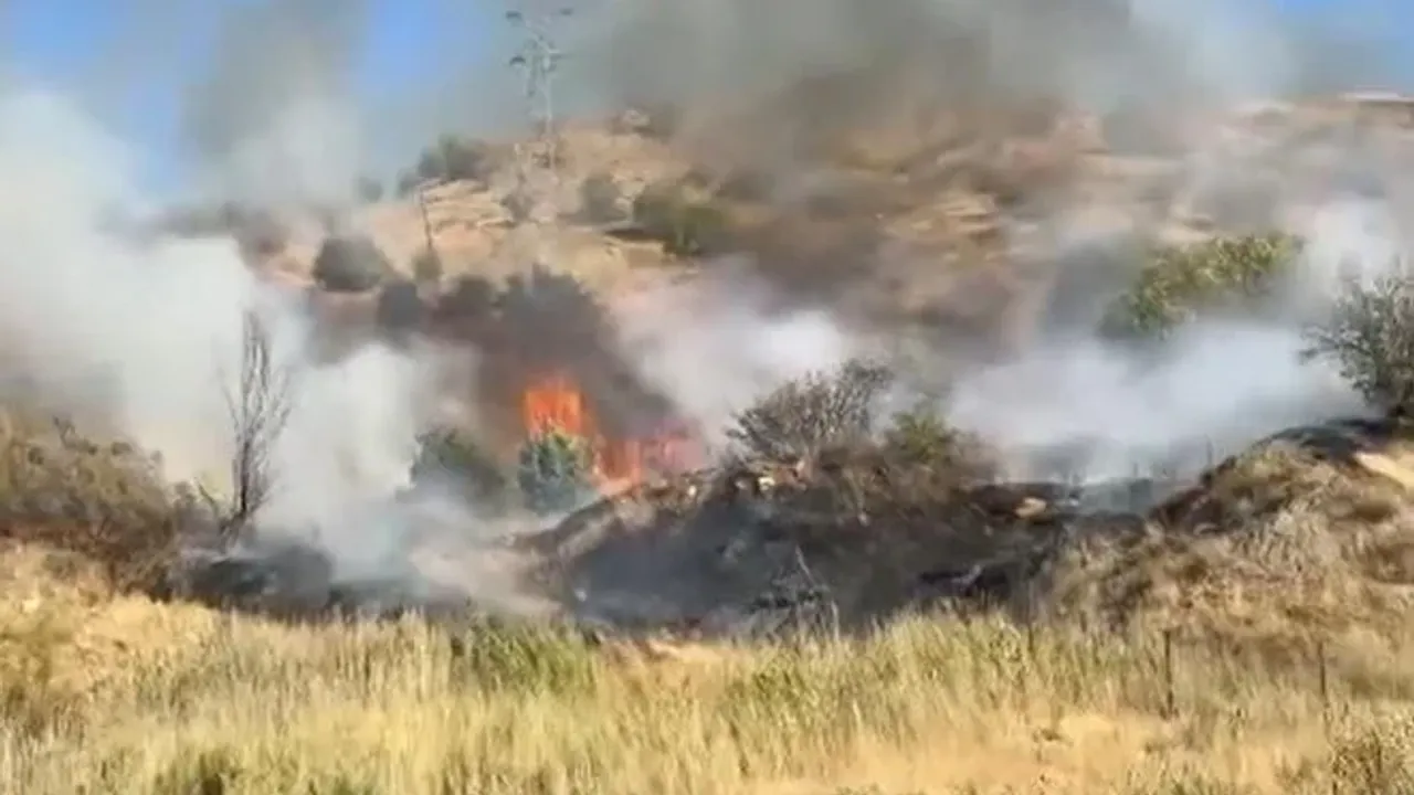 Hakkari-Yüksekova Karayolu üzerindeki Yeni Köprü yakınlarında, iddiaya göre elektrik tellerinin kopması sonucu kuru otların tutuşmasıyla başlayan yangın kısa sürede büyüdü.